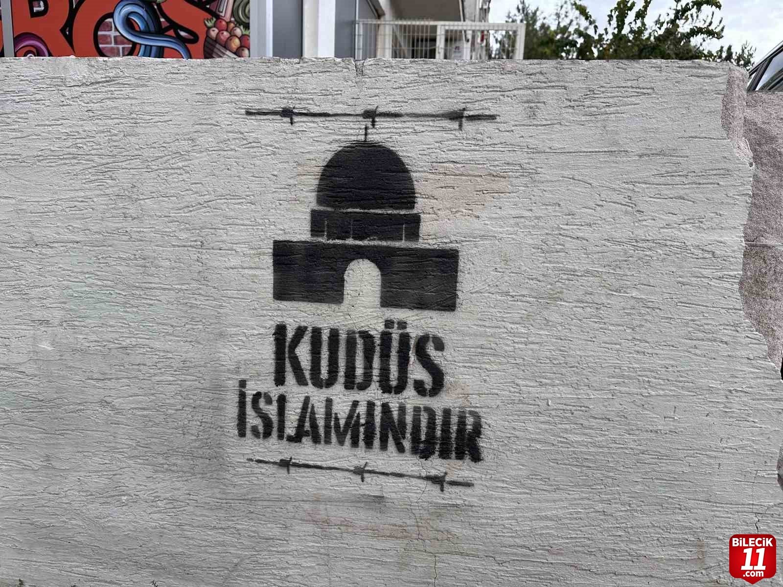 İsrail, geçtiğimiz 7 Ekim’de Gazze Şeridi’ne yönelik başlattığı abluka ve saldırılarına devam ediyor. Eskişehir’de vatandaşlar ise çeşitli yöntemlerle İsrail’e tepki gösterirken, Filistin halkına destek çağrısı yapıyor. Bu çerçevede, geçtiğimiz günlerde çeşitli afiş ve duvar yazılarıyla Gazze’de yaşanan insanlık dramına tepki gösteren Eskişehirliler, son olarak ‘Kudüs İslam’ındır’ yazısıyla dikkatleri çekti. Kentin çeşitli bölgelerine yazılan yazıları gören vatandaşların fotoğraf çektikleri görüldü. – İHA