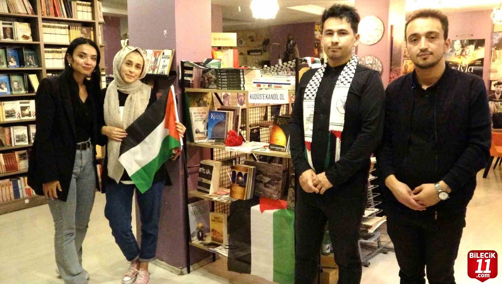 Kütahya Filistin Platformu üyeleri, farkındalığı daha da artırmak amacıyla bir kitap kafede ’Filistin köşesi’ oluşturdu. Kafede ayrıca işgalcilerin Filistin halkına yaptığı zulmü konu eden ’Cumartesi avcısı’ filmi de gösterime sunuldu.