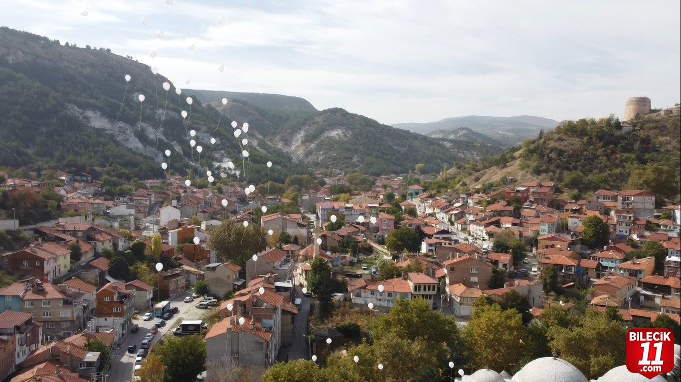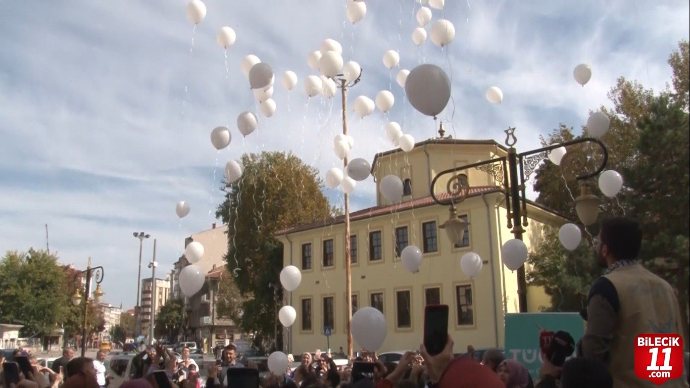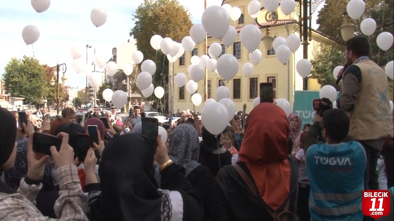 Kütahya’da İsrail’in saldırılarında hayatını kaybeden Filistinli çocuklar için gökyüzüne beyaz balonlar bırakıldı.