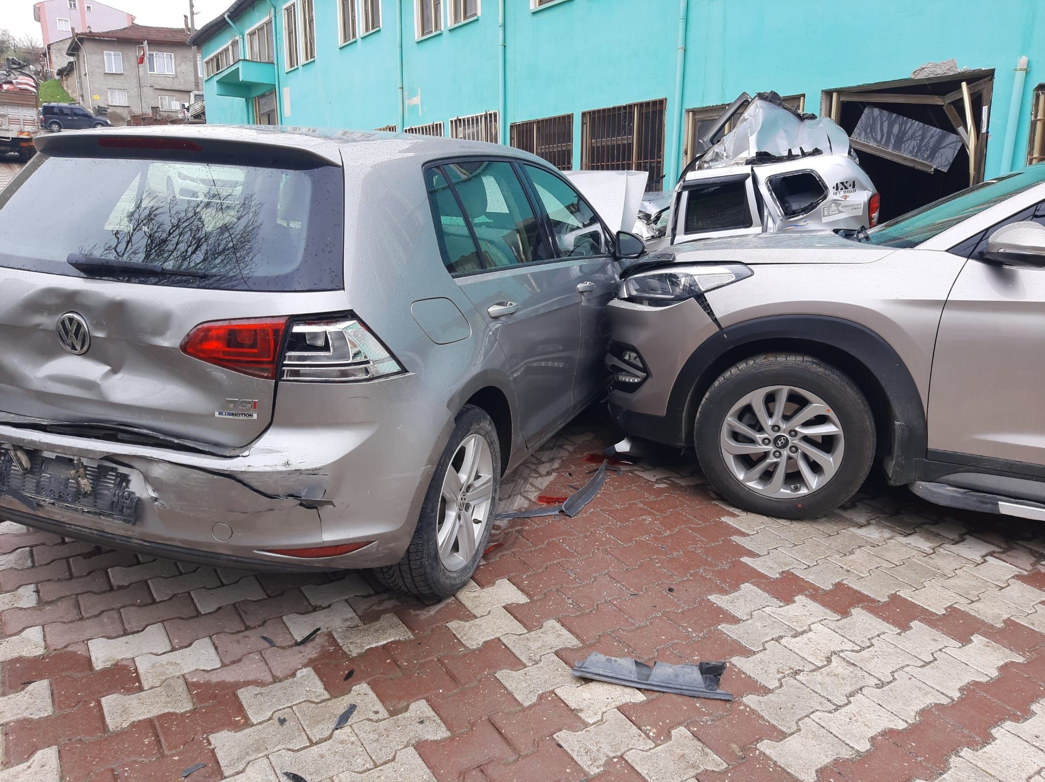 3. FRENİ BOŞALAN KAMYON PARK HALİNDEKİ ARAÇLARA ÇARPTI