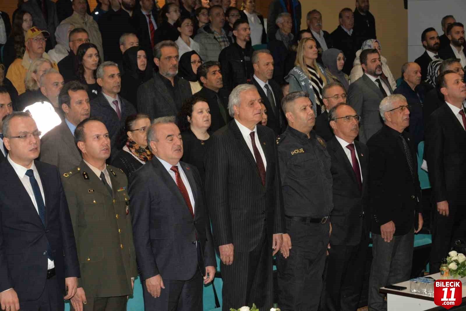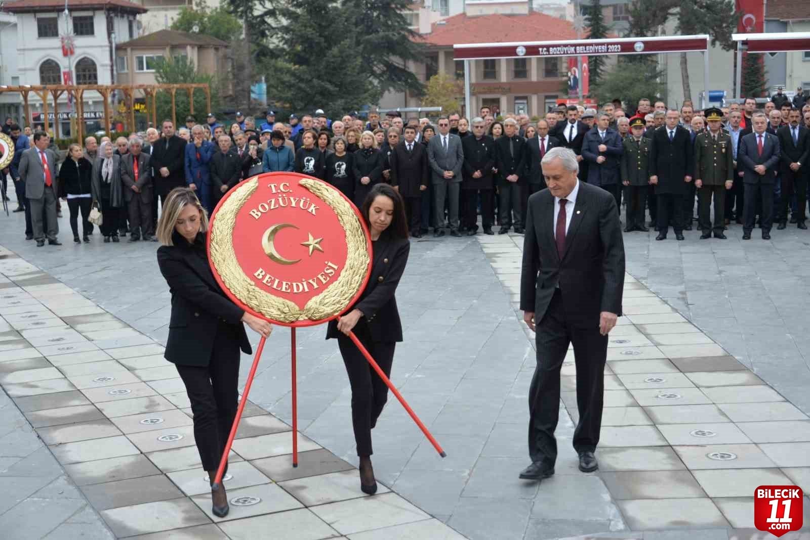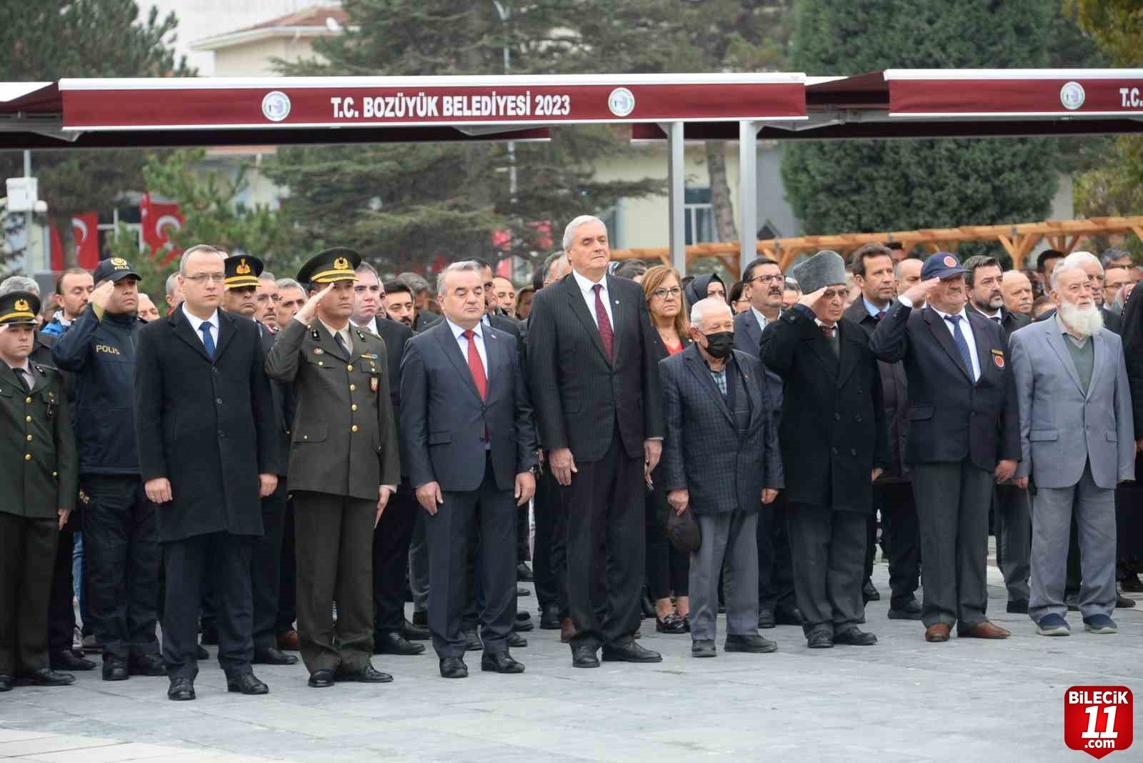 Ardından saat 9’u 5 geçe tüm yurtta olduğu gibi Bozüyük’te de hayat durdu. 2 dakikalık saygı duruşunun ardından İstiklal Marşı söylenirken göndere çekili şanlı bayrağımız yavaş yavaş yarıya indirildi. İstiklal Marşının okunmasının ardından Cumhuriyet Meydan’ındaki törenler sona ererken Protokol üyeleri ve vatandaşlar Borsa İstanbul Anadolu Lisesi tarafından düzenlenen programa katılmak üzere Bozüyük Belediyesi Metristepe Kültür Merkezi’ne geldiler.
