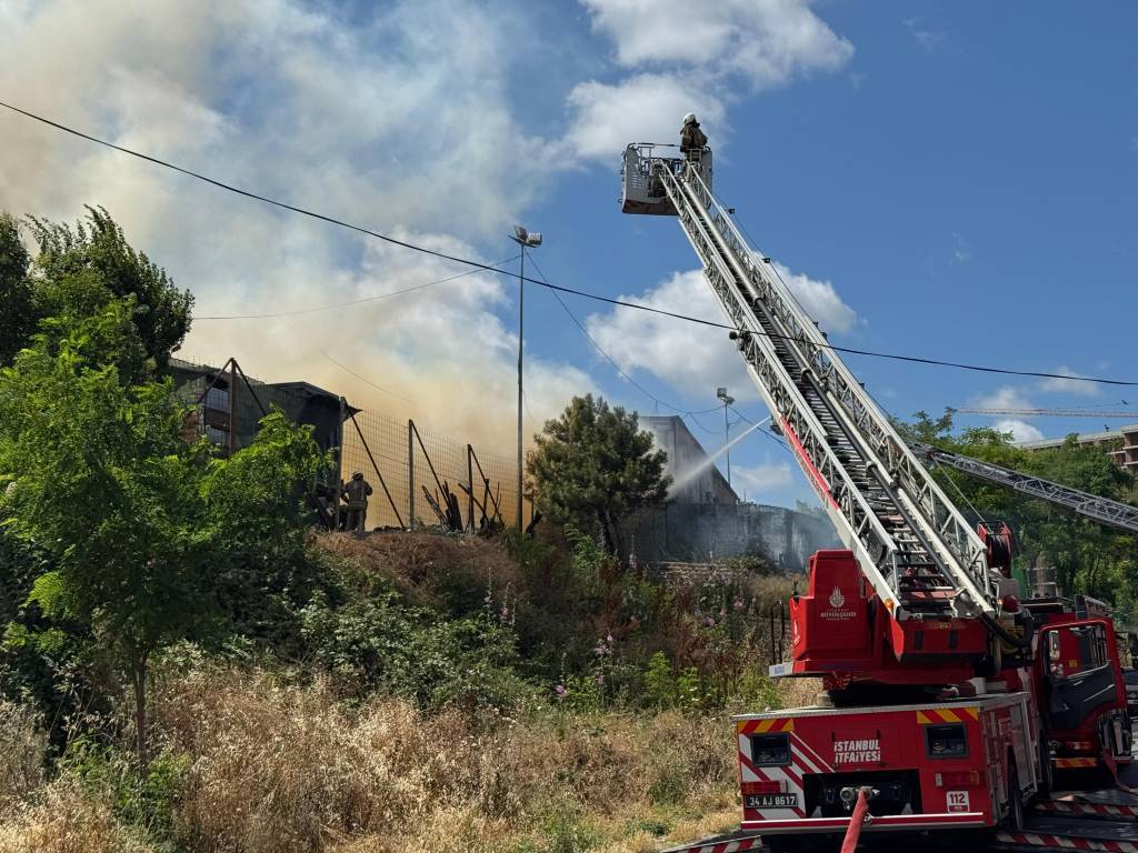 Gaziosmanpaşa'da geri dönüşüm tesisinde çıkan yangına itfaiye ekiplerince müdahale ediliyor.