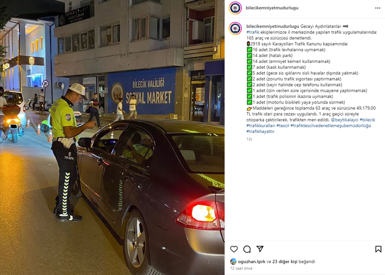 Maddeleri gereğince toplamda 63 araç ve sürücüne 49.179,00 TL trafik idari para cezası uygulandı. 1 araç geçici süreyle otoparka çektirilerek, trafikten men edildi