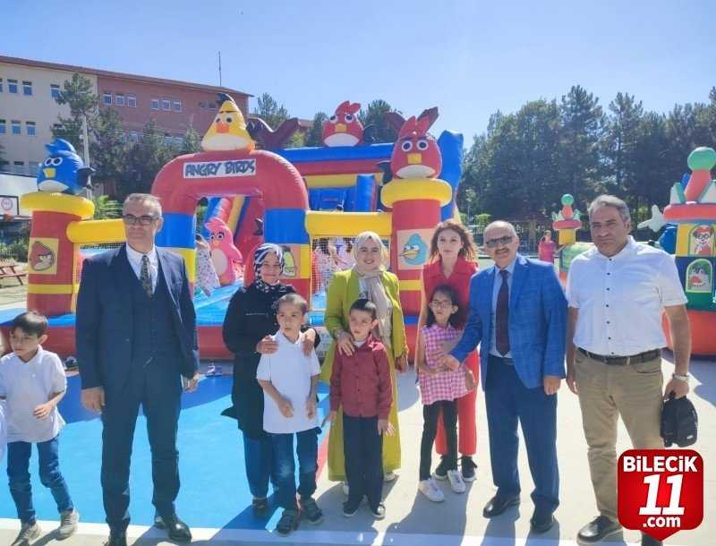 Kurtuluş İlkokulu okul bahçesinde düzenlenen etkinlikte şişme oyun alanlarında eğlenen öğrencilere pamuk şekeri ve patlamış mısır ikram edildi.