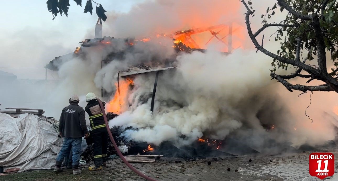 Kütahya’nın Gediz ilçesinde çıkan yangında ahşap bina yanarak küle döndü.