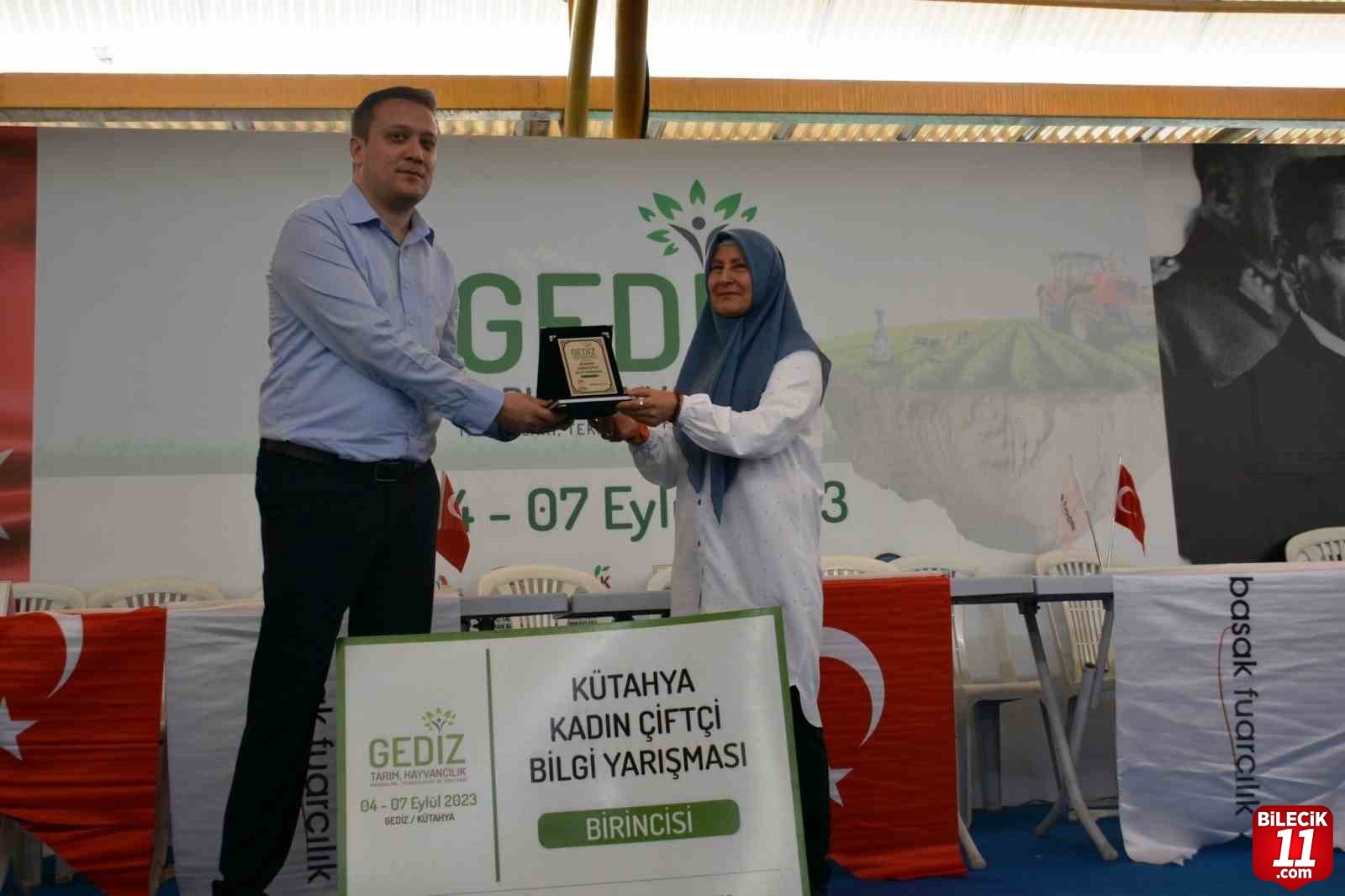 Kütahya İl Tarım Müdürü Orhan Özçalık, konuyla ilgili yaptığı açıklamada, “Gediz Tarım, Hayvancılık Makinaları, Teknolojileri ve Yem Fuarında düzenlenen Kadın Çiftçiler Bilgi Yarışmasında sorulan 25 soru sonunda, Altıntaş, Aslanapa ve Domaniç ilçelerimiz finale kalmıştır. Soruları en çok cevaplayarak birinci olan Aslanapa ilçemizden katılan kadın çiftçimiz olmuştur. İkinciliği Domaniç ve üçüncülüğü Altıntaş ilçelerimizden katılım sağlayan kadın çiftçilerimiz elde ettiler. İlçelerimizden yarışmaya katılan tüm yarışmacılarımızı tebrik ediyorum” dedi. – İHA