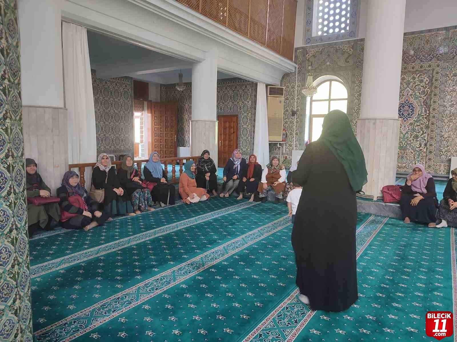 Ulu Camiinde düzenlenen seminerde Vaiz Hülya Budak, kadın umrecilere Umrenin fazileti ve umredeki işaretlerin anlamları ile bu ibadetin gereği olan bir arada yaşama bilinci konularında bilgiler verdi.