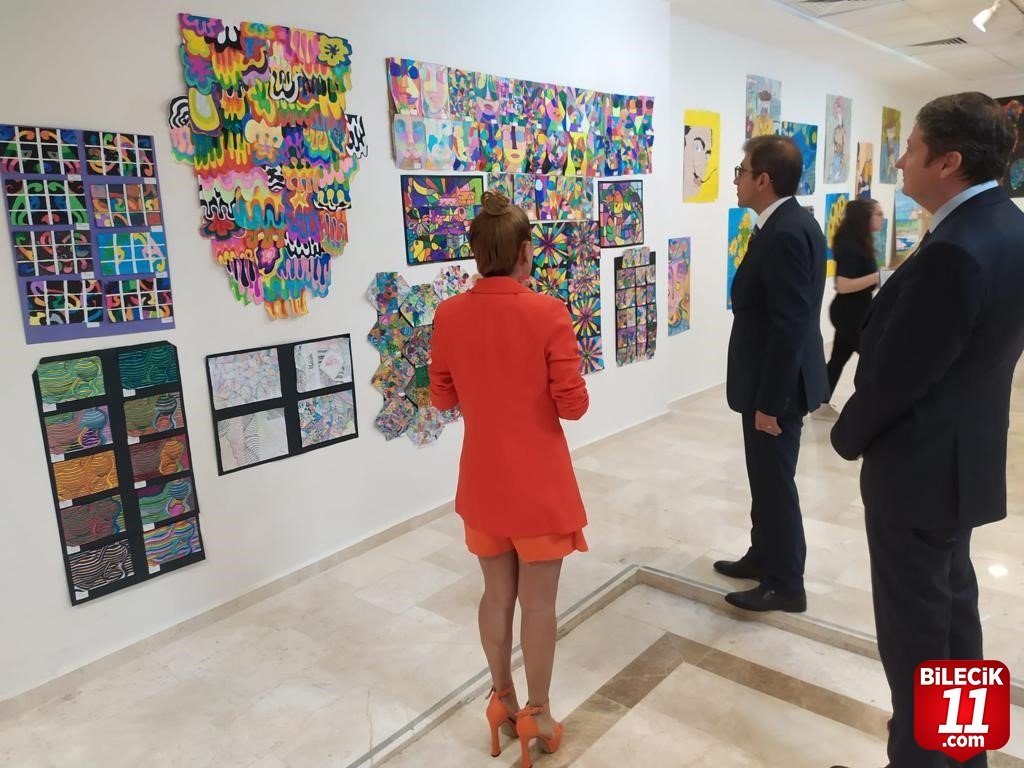 Özel bir okulda eğitim alan öğrencilerin hazırladıkları çalışmalar, Bilecik Şeyh Edebali Üniversitesi (BŞEÜ) Güzel Sanatlar ve Tasarım Fakültesinin dinlenmelik alanında sergilendi.