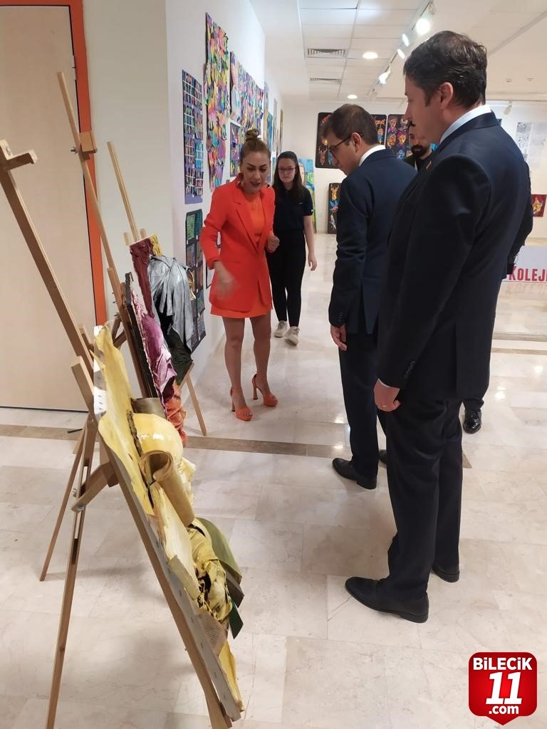 Görsel Sanatlar dersi çerçevesinde düzenlenen sergide öğrencilerin hazırladıkları; mangala, çizgi çalışmaları, kara kalem çalışmaları, yağlı boya çalışmaları ziyaretçilerin beğenisine sunuldu. Sergiye; Bilecik Cumhuriyet Başsavcısı Burak Olgun, BŞEÜ Rektör Yardımcısı Prof. Dr. Cenk Karakurt, Emniyet Müdür Yardımcısı Kubilay Yıldız, öğretmenler, öğrenciler ve aileleri katıldı.