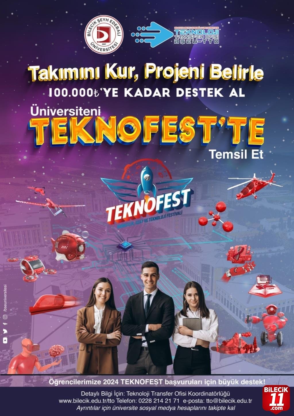 BŞEÜ bünyesinde eğitim gören öğrencilere 2024 TEKNOFEST başvuruları için 100 Bin TL’ye kadar maddi destek sağlanacağı belirtildi.