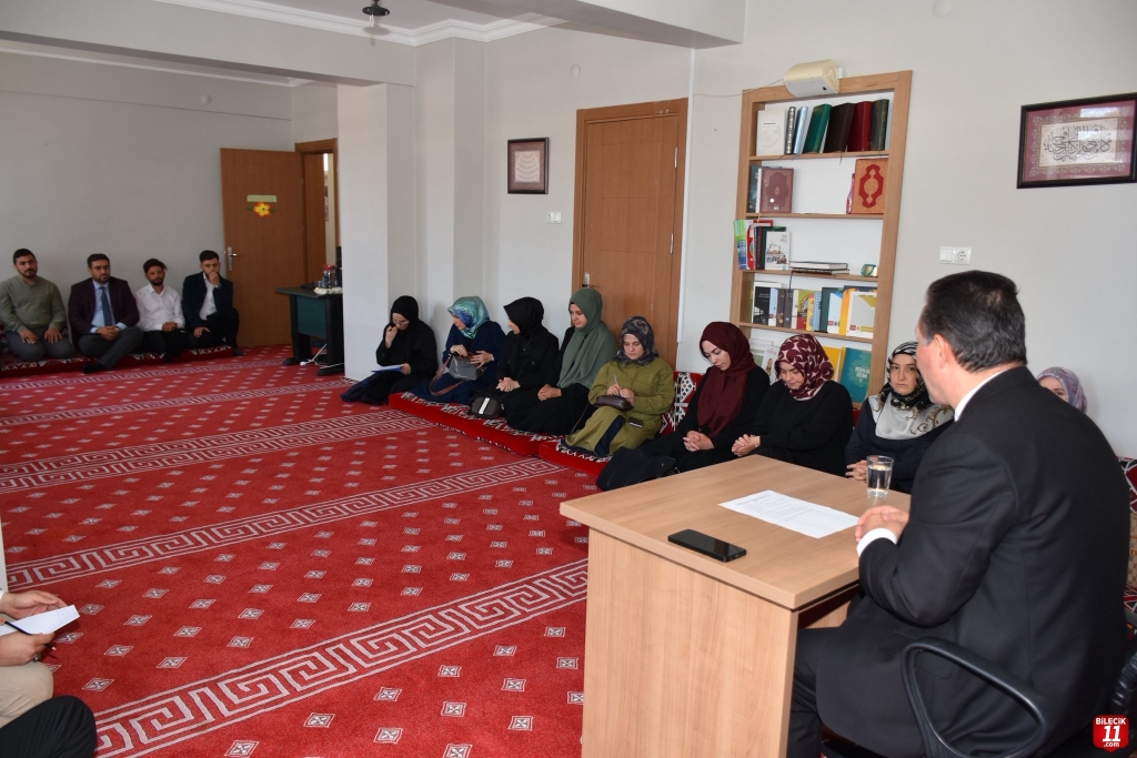 Bilecik İl Müftülüğü Gençlik Koordinatörlüğü tarafından düzenlenen toplantıya İl Müftü Yardımcısı, il ve ilçe gençlik koordinatörleri ile manevi danışmanlar katılım sağladı. Gençlik Koordinatörleri ve Manevi Danışmanlar İstişare Toplantısı, Diyanet Gençlik Merkezi’nde gerçekleştirildi. Gençlik koordinatörleri ve manevi danışmanlara hitap eden Müftü Dilek, gençlerin geleceğimiz olduğunu, onların milli ve manevi değerlerine bağlı olarak yetişmelerinin çok önemli olduğunu belirtti. Müftü Dilek, gençlerde dini bilginin yetersiz olduğunu, dolayısıyla her birimizin sorumluluklarını heyecanla ve muhabbetle yerine getirmemiz gerektiğini vurguladı. Müftü Dilek, “Bizim henüz ulaşamadığımız dini bilgileri çok zayıf insanlarımız var. Kendilerine ulaşamadığımız her genç, her çocuk sahih dini bilgiye ya ulaşamıyor ya da yanlış yerlerden öğreniyor. Hangi yaştan olursa olsun muhataplarımıza ulaşmalı ve onlara sahih dini bilgiyi ulaştırmalıyız. Bu açıdan görevimiz çok, sorumluluklarımız ağır.” ifadelerini kullandı. Konuşmaların ardından, İl Müftü Yardımcısı Adem Özsoy, toplantı gündemini sundu. Toplantıda katılımcılardan gelen sorular, görüş ve öneriler değerlendirildi. Ayrıca, il ve ilçelerde yürütülen gençlik ve manevi danışmanlık hizmetlerinin verimliliğini artırmak için dile getirilen teklif ve talepler ele alınarak çözüm önerileri de sunuldu.