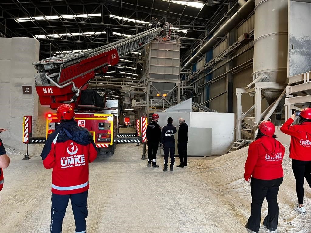 Bilecik’in Bozüyük ilçesinde senaryo gereği bir fabrikada itfaiye ekipleri ile UMKE ekipleri silo üzerinde mahsur kalan bir işçi ihbarı aldı. Hemen olay yerine ulaşan ekipleri itfaiye aracının merdiveni yardımıyla mahsur kalan işçiyi kurtardılar. Kapalı hammadde sahasında gerçekleşen tatbikatta yaralı işçi 112 Acil Servis ekiplerine teslim edilmesiyle sona erdi.