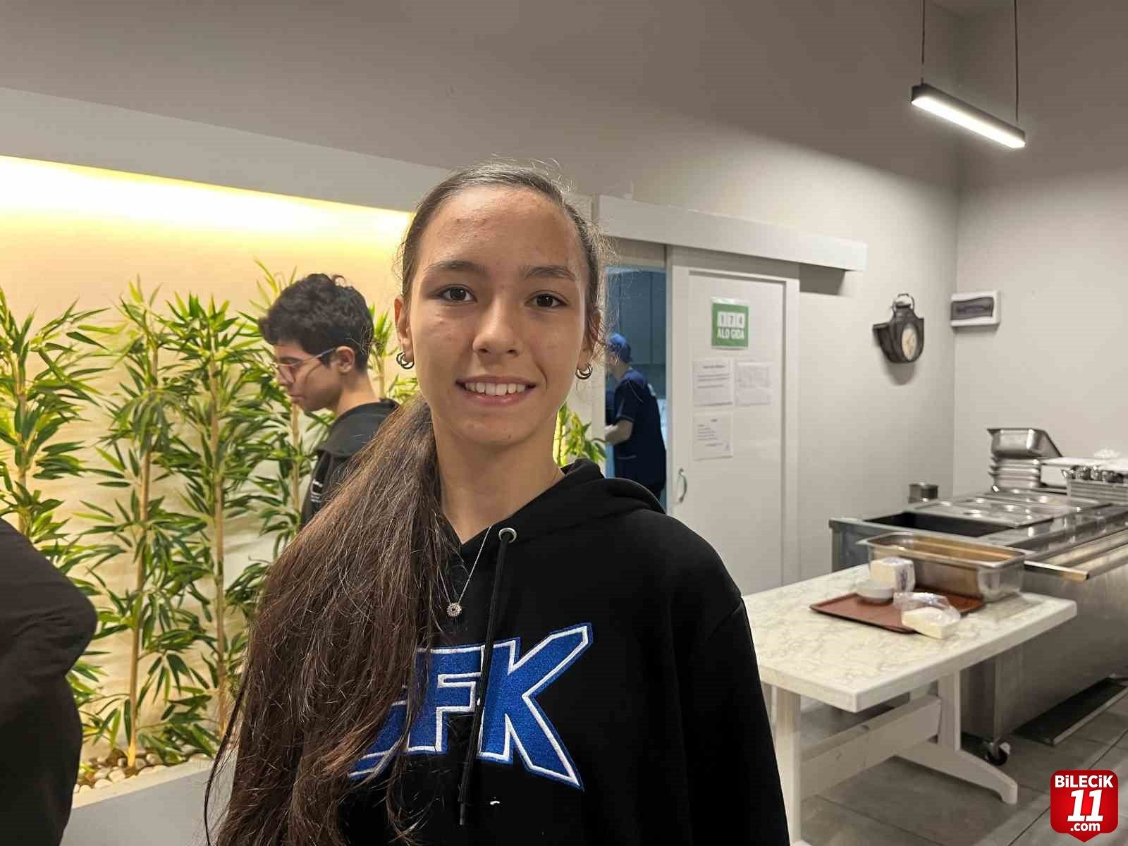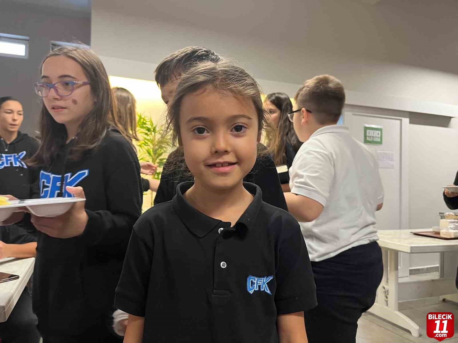 Eskişehir Çağfen Koleji 3. Sınıf öğrencisi Ada Özcan, “Tabağıma yiyebileceğin kadar yemek koyuyorum. Bu sayede de daha çeşitli yemekler yiyebiliyorum. Eskiden birazcık daha israf ediyorduk, şimdi azaldı. Evde de annem istediğim kadar yemek koyuyor. Annem bu duruma seviniyor. Daha az atık çıkarıyoruz evde” dedi.