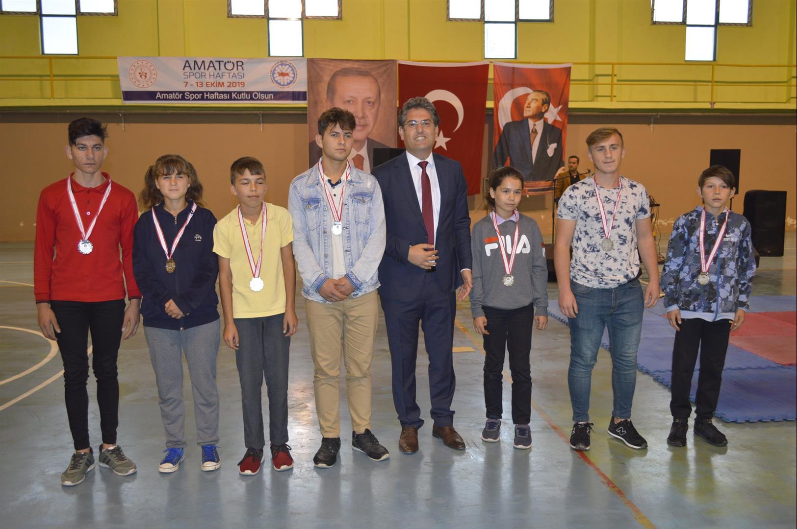 Gençlik ve Spor İlçe Müdürlüğünce Amatör Spor Haftası başlaması nedeniyle Kapalı Spor Salonu’nda tören düzenlendi.