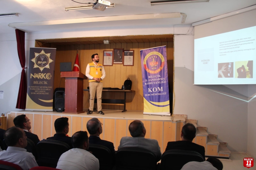 Konferansta; İlçe Jandarma, İlçe Emniyet, İlçe Toplum Sağlığı Merkezi ve İl Yeşilay ekiplerince uyuşturucu, alkol, tütün gibi madde bağımlılıkları ile kumar, teknoloji bağımlılığı gibi davranışsal bağımlılıklarla mücadele konusunda ilçe muhtar ve imam hatiplere detaylı anlatım yapıldı.