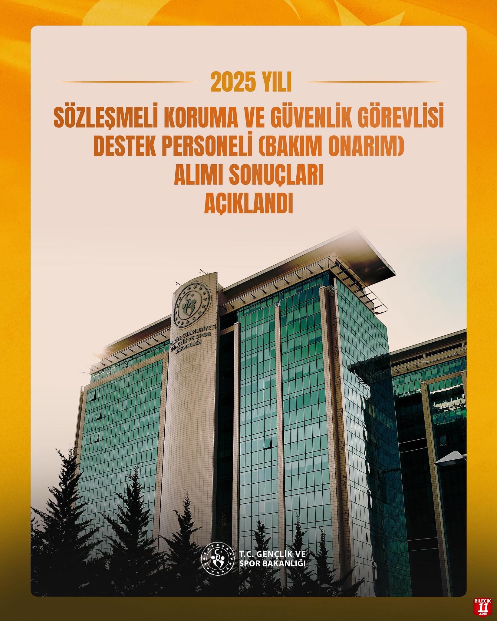 2025 Yılı Sözleşmeli Koruma ve Güvenlik Görevlisi ile Destek Personeli (Bakım-Onarım) Alımı Sonuçları açıklandı.