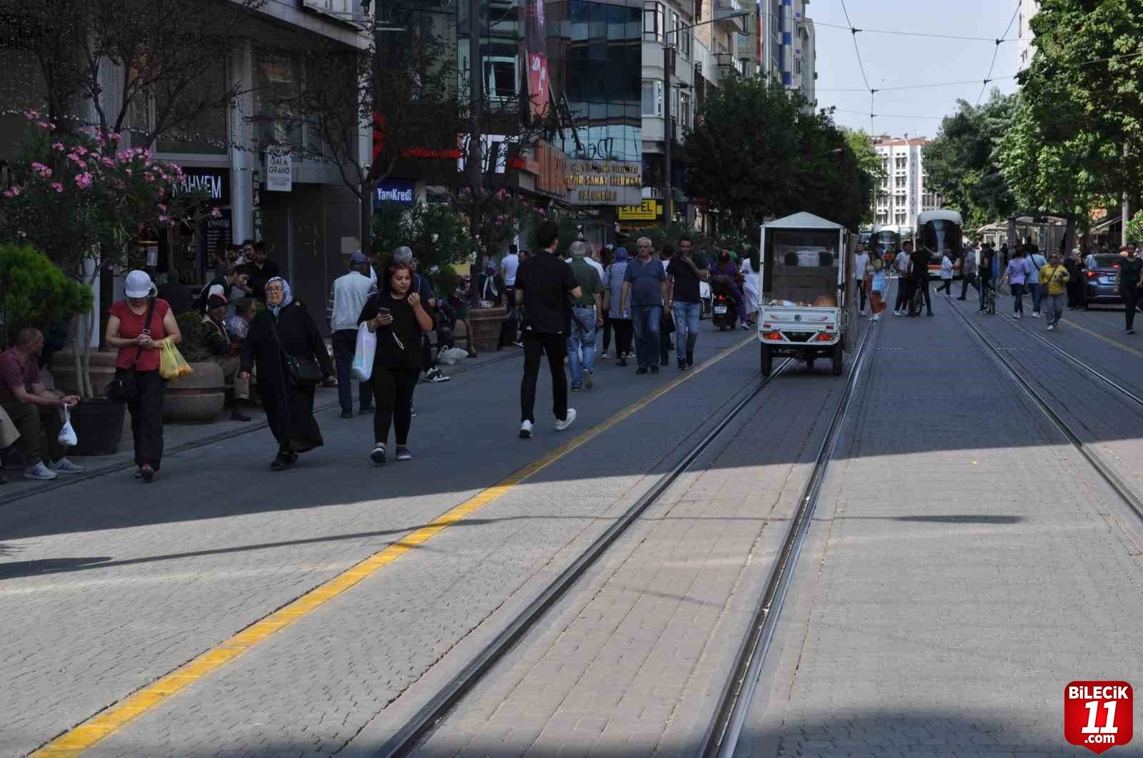 Uzmanlar tarafından son yılların en sıcağı olduğu belirtilen 2023 yılının yaz mevsiminde bunaltıcı havalar etkili olmaya devam ediyor. Doktorlar, özellikle günün öğle saatlerinde güneş altında kalmanın sağlık açısından tehlikeli olabileceğine dikkat çekerken, bu konuda hassas davranan Eskişehirli vatandaşlar gölgelik alanlarda yürümeyi tercih ediyor. Kentin en merkezi noktalarından olan İki Eylül Caddesi ve Hamamyolu Caddesi’nde çoğu vatandaşın güneşin etkili olduğu yerlerde bulunmaktan kaçındığı görülürken, gölgelik alanlarda oluşan kalabalık dikkat çekti. Şapka takarak ve yanında soğuk su taşıyarak önlem alan vatandaşlar, dondurma gibi soğuk tatlılar tüketerek serinlemeyi tercih etti. – İHA