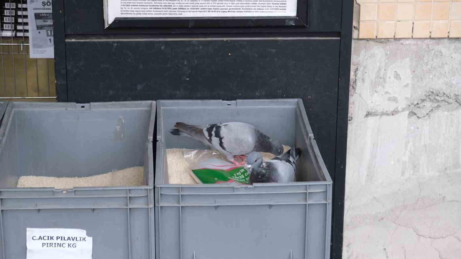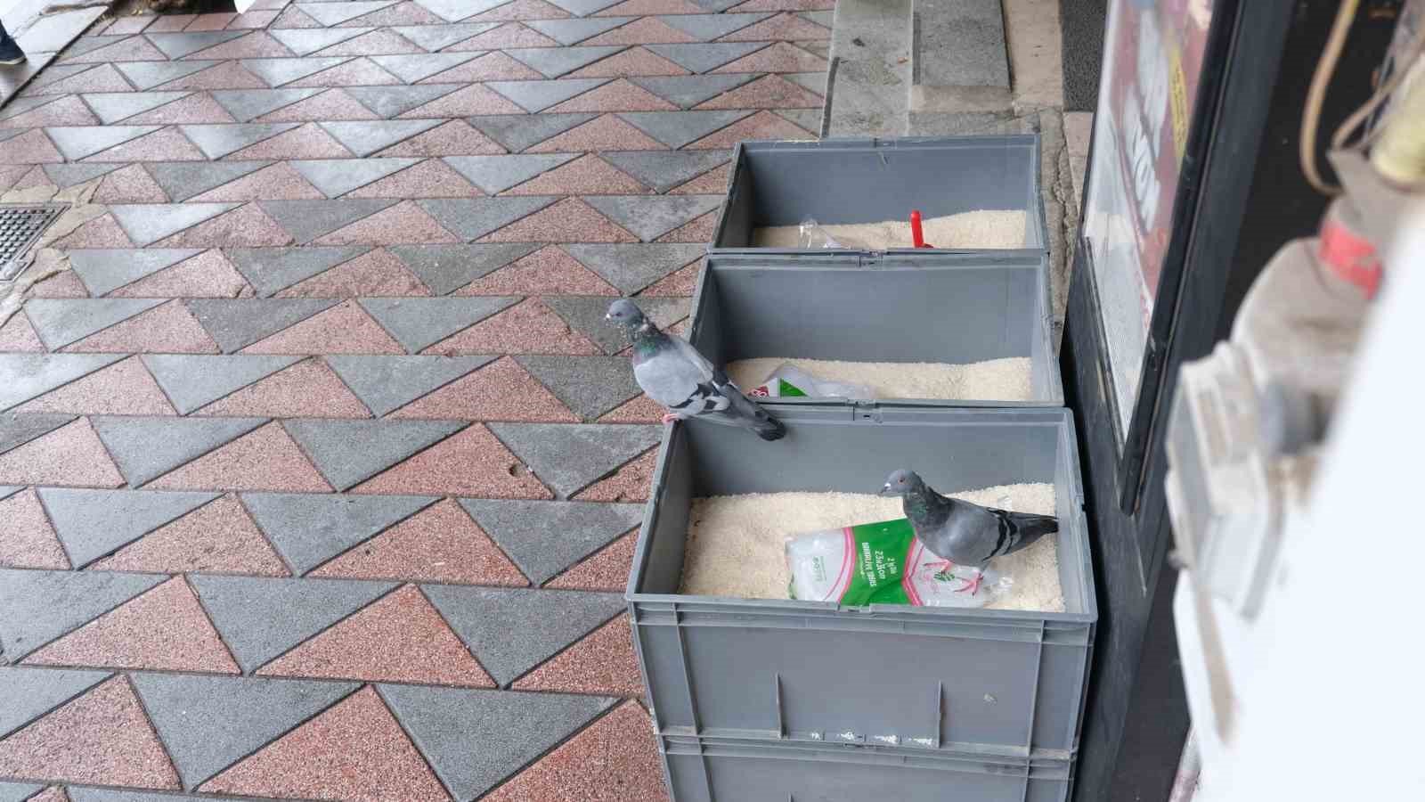 Odunpazarı ilçesi Mustafa Kemal Atatürk Caddesi üzerinde bulunan bir marketin bakliyat bölümündeki pirinç kovaları, aç kaldığı tahmin edilen güvercinlerin hedefi oldu. Yiyecek bulamadığı tahmin edilen kuşların iştahla pirinçleri yediği görüldü. Marketin önünden geçen vatandaşlardan bazıları gülüp geçerken, bazıları ise hijyensizlikten ve sağlıksız olmasından dolayı işletmeye tepki gösterdi. Epeyce pirinç yiyen güvercinler, aradan birkaç dakika geçtikten sonra market görevlisi tarafından uzaklaştırıldı. – İHA
