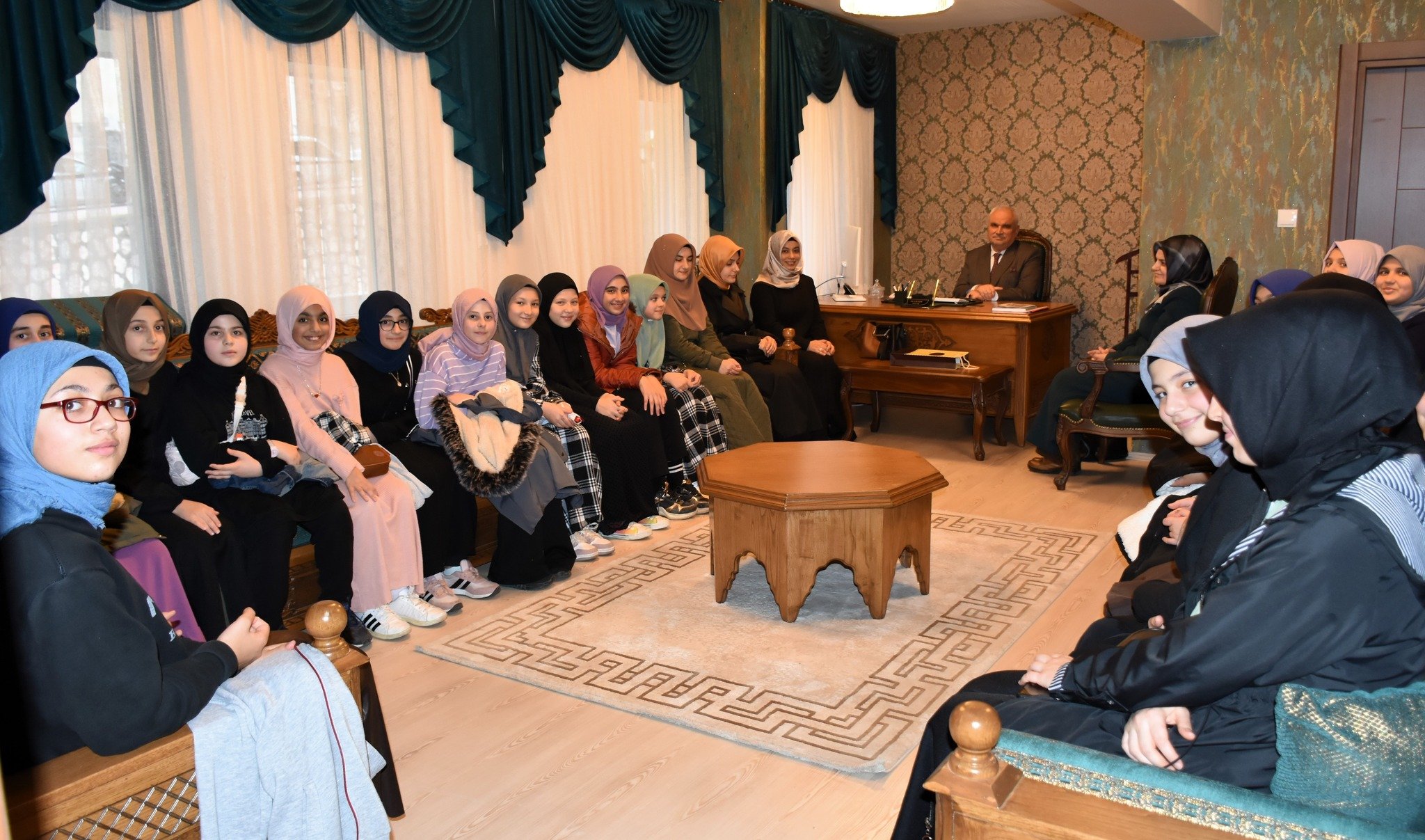 Öğrencileri makamında ağırlayan Erhun, ziyaretten duyduğu memnuniyeti dile getirdi.