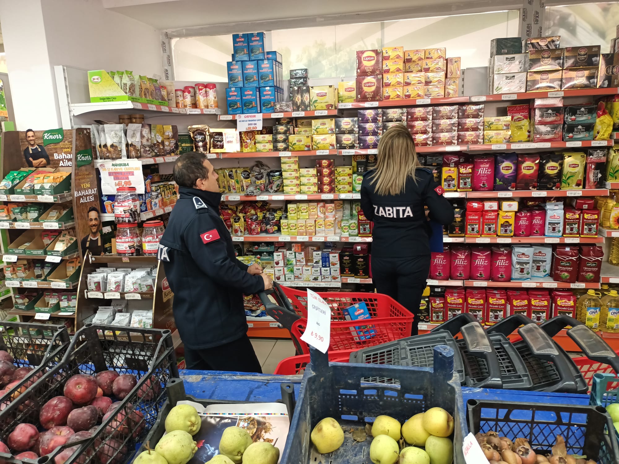 Ürünlerin etiket fiyatı ile kasa fiyatlarını karşılaştıran görevliler, ürünlerin son kullanma tarihlerini de kontrol etti.
