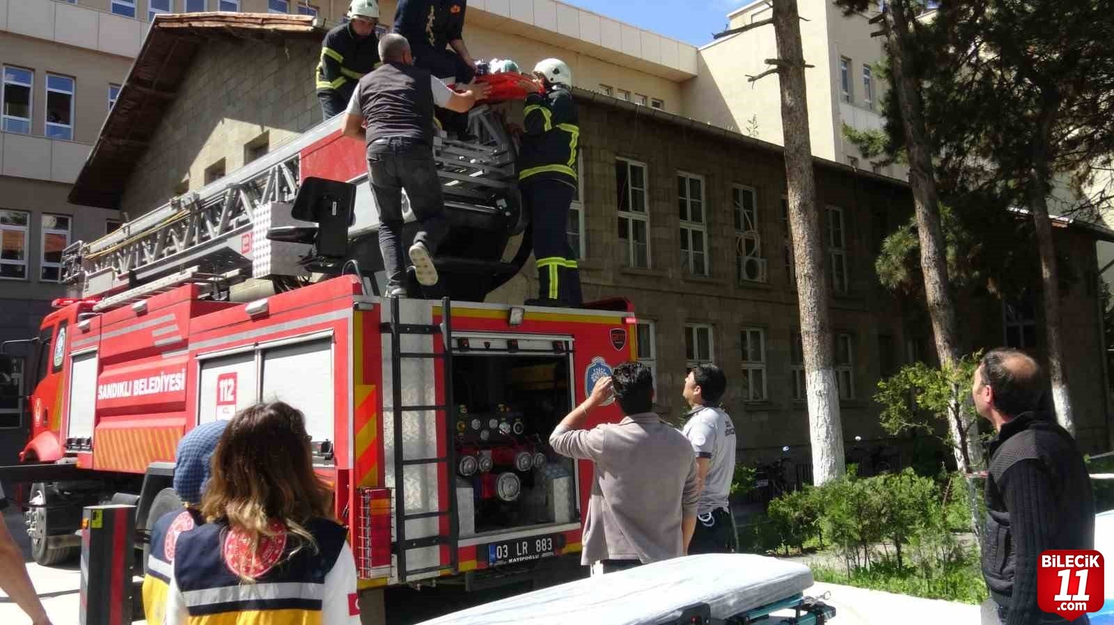 Sandıklı Devlet Hastanesi’nde Ulusal Medikal Kurtarma Ekipleri (UMKE) ile hastane yönetimi iş birliğinde yangın tatbikatı gerçekleştirildi.