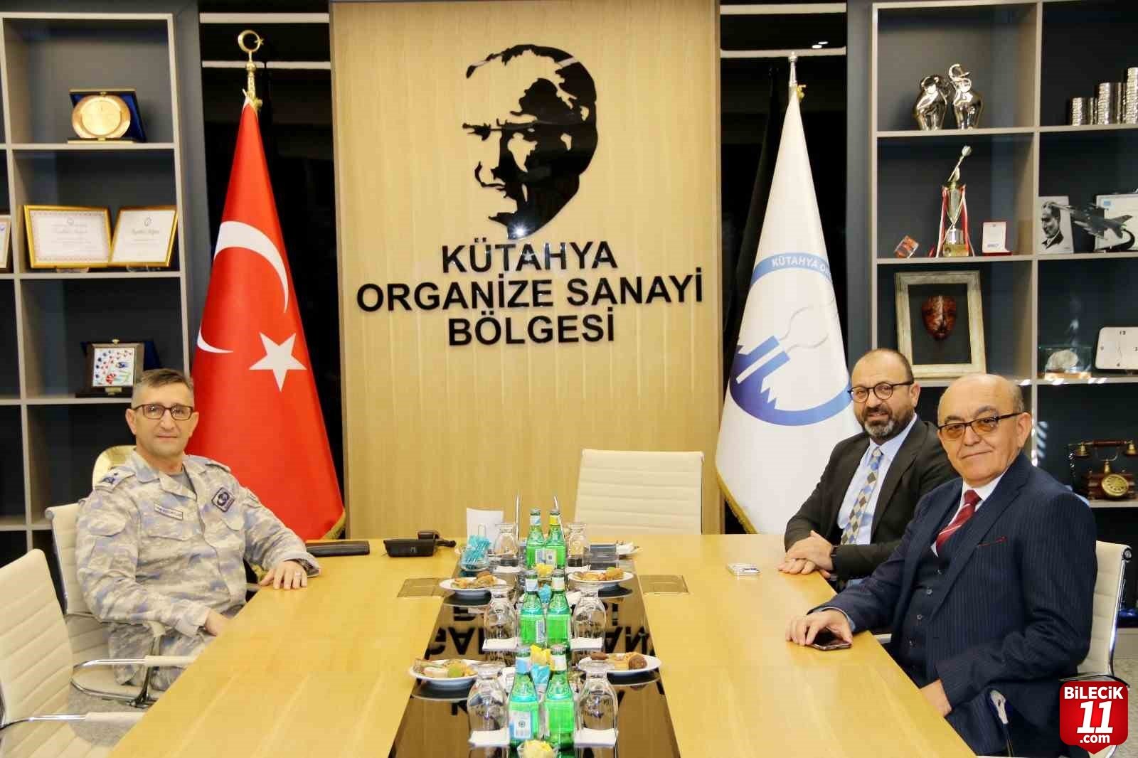 Kütahya Hava Er Eğitim Tugayı Komutanı Tuğgeneral Mustafa Baş, Kütahya Organize Sanayi Bölgesi Yönetimini ziyaret etti. Gerçekleşen ziyarette, Tuğgeneral Mustafa BAŞ, Kütahya Organize Sanayi Bölgesi Yönetim Kurulu Başkanı Tolga Eskioğlu ve Başkan Vekili Emin Yüce tarafından karşılandı.