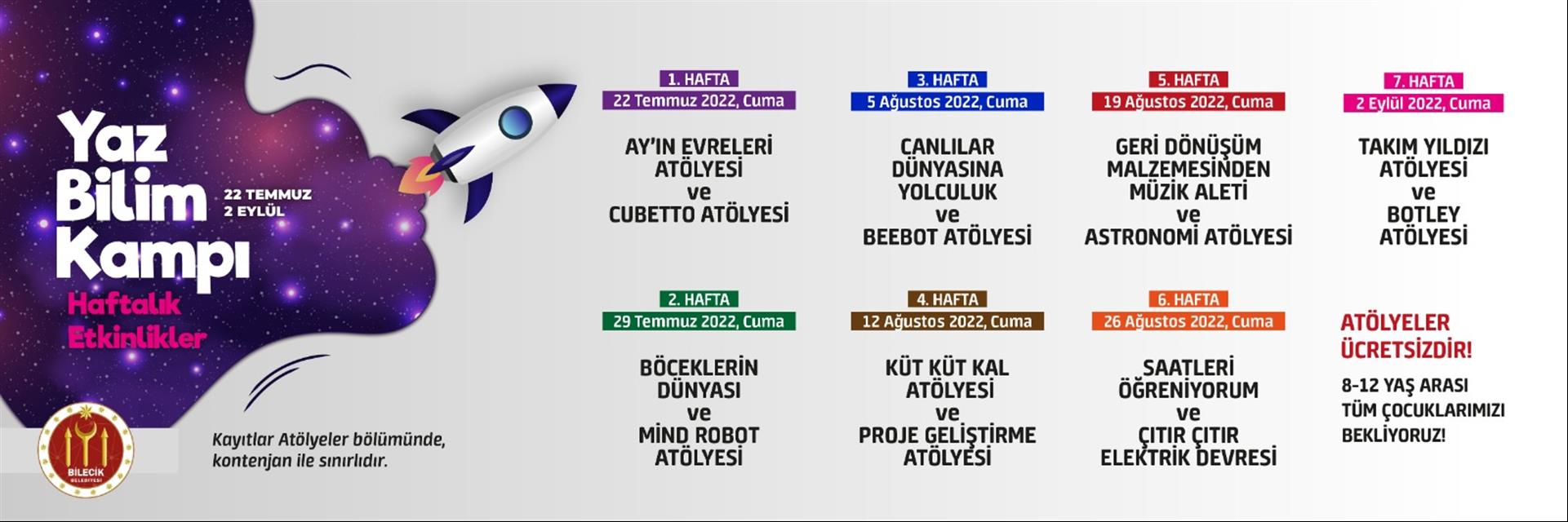 Eğitime ve çocuklara verdiği farklı çalışmaları ortaya koyan Bilecik Belediyesi, tüm çocukları 7 hafta sürecek Yaz Bilim Kampı atölyelerine davet ediyor.
