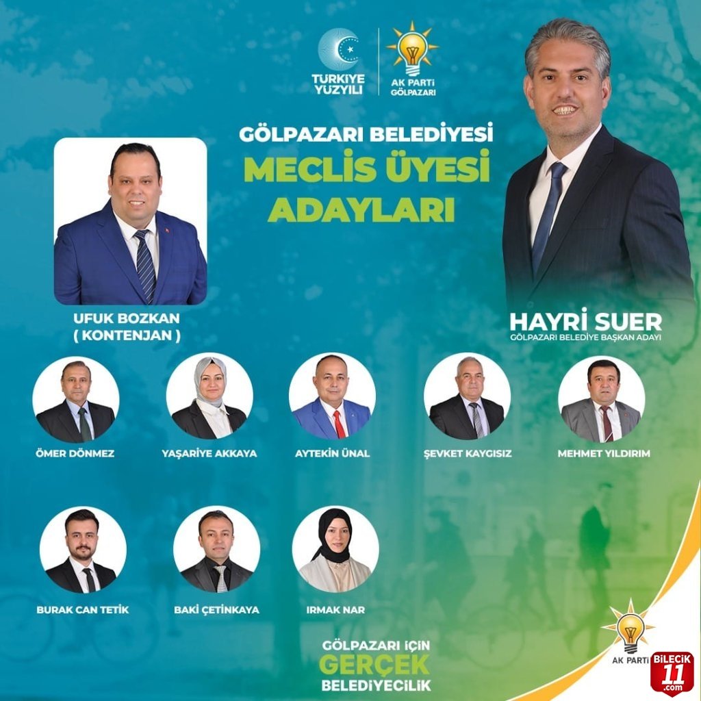 Buna göre AK Parti Gölpazarı Belediye Başkan Adayı Hayri Suer’ın seçimlere katılacağı Meclis üyeleri netleşti.