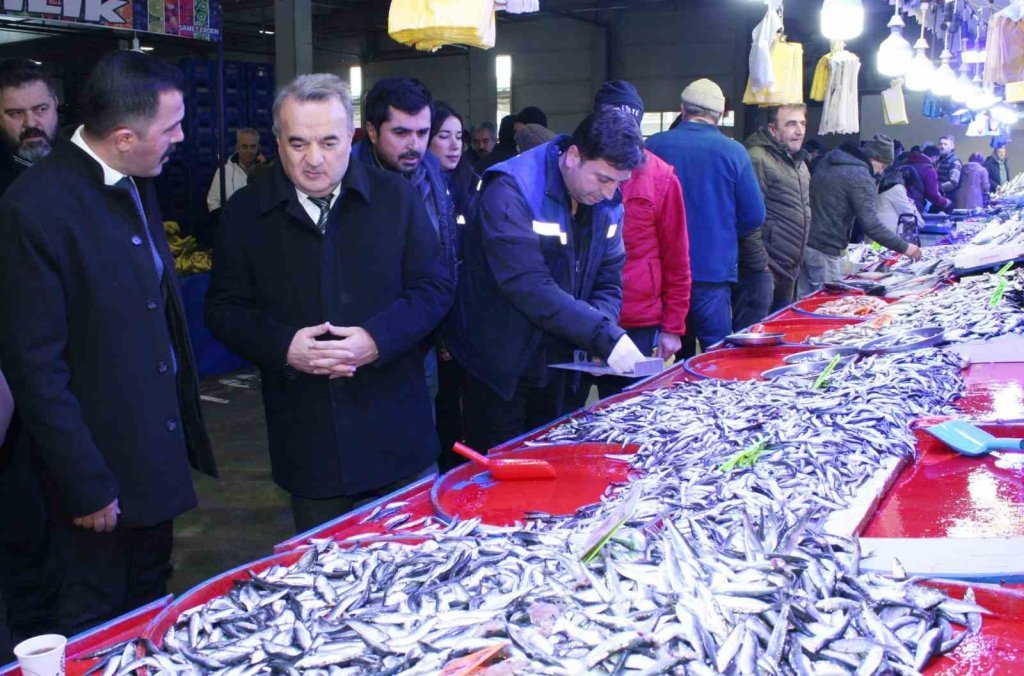 Bozüyük Kaymakam Adem Öztürk ‘ünde katıldığı denetimde, Bozüyük İlçe Tarım ve Orman Müdürlüğü ekiplerince, pazarda yer alan balık satış yerlerinde balık boy ölçümleri yapıldı. – İHA