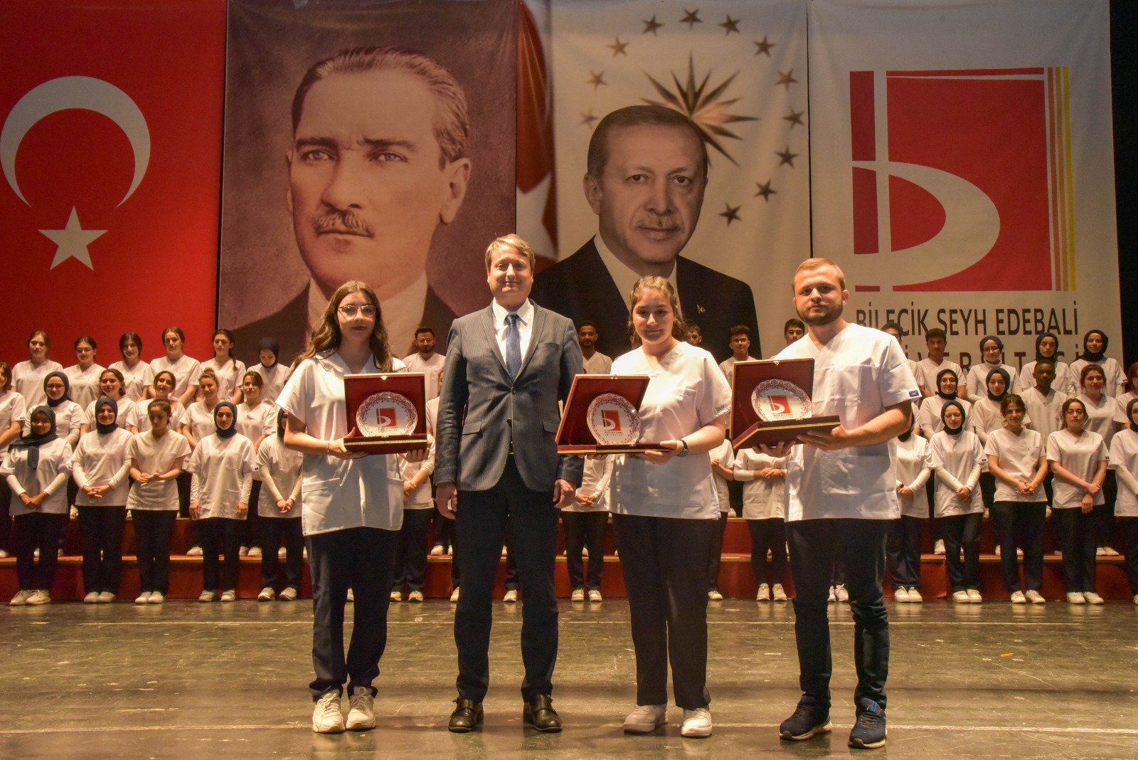 Bilecik Belediyesi Şeyh Edebali Kültür ve Kongre Merkezinde düzenlenen etkinliğe, Belediye Başkan Vekili Melek Mızrak Subaşı, Rektörü Prof. Dr. Şükrü Beydemir, Rektör Yardımcıları Prof. Dr. Cenk Karakurt ile Prof. Dr. Sıddıka Özkaldı Karakuş, Sağlık Bilimleri Fakültesi Dekanı Prof. Dr. Ali İrfan Güzel, il protokolü, akademik personel ve öğrenciler ile aileleri katıldı.