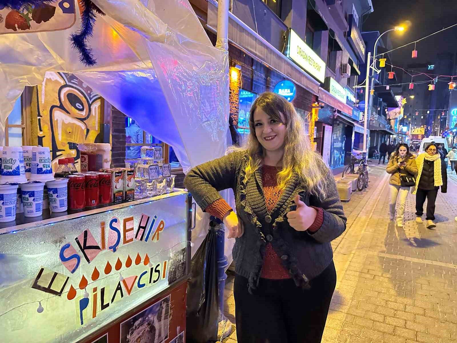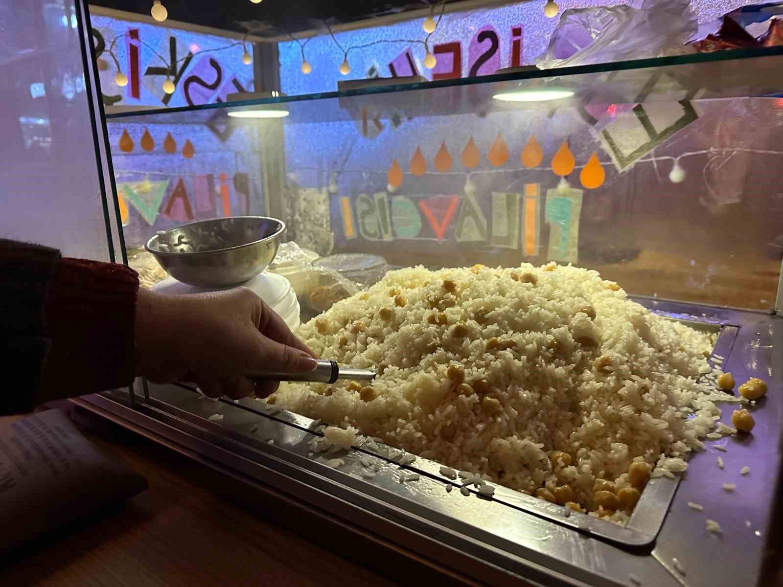 Soğuk havaya rağmen tezgahında pilav satan Kadriye Özdemir ise, ”Yılbaşı akşamı sizlerle birlikte halka hizmet ediyorum. Soğukta biraz zor ama yine de kendi işimi yaptığım için, emeğimi harcadığım için güzel. Yılbaşı gecesi olduğu için arabamı güzelce süsledim. Hani göze hitap etsin biraz da böyle hani görsel olarak güzel dursun diye süsledim. Bugün bayağı bir yoğunluk var. Ben beşten beri buradayım da hala insanlar geliyor yoğunluk yani bayağı. Sokak ne zaman boşalırsa ben de evime o zaman gidiyorum. Ülkeme, vatanıma, milletime herkesin yeni yılını kutluyorum. Sağlıklı nice yıllar diliyorum herkese inşallah” dedi.