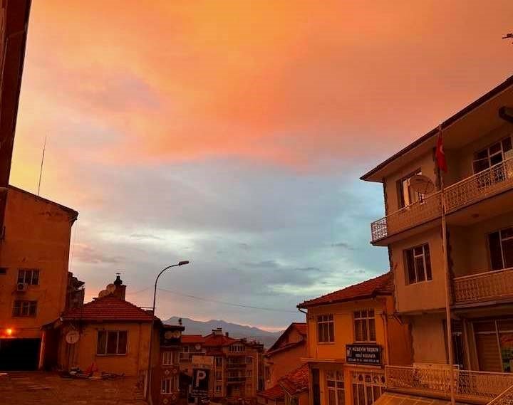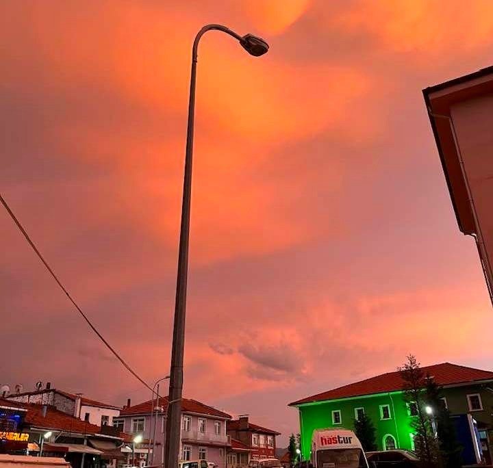 Gökyüzündeki kızıllık ilçedeki cadde ve sokaklara da yansırken, gökyüzündeki kızıllığı gören vatandaşlar çektikleri fotoğraf ve videoları sosyal medya hesaplarından paylaşarak şaşkınlıklarını dile getirdiler. Bu görüntünün nedeninin çöl tozu olduğu sanılıyor. – İHA