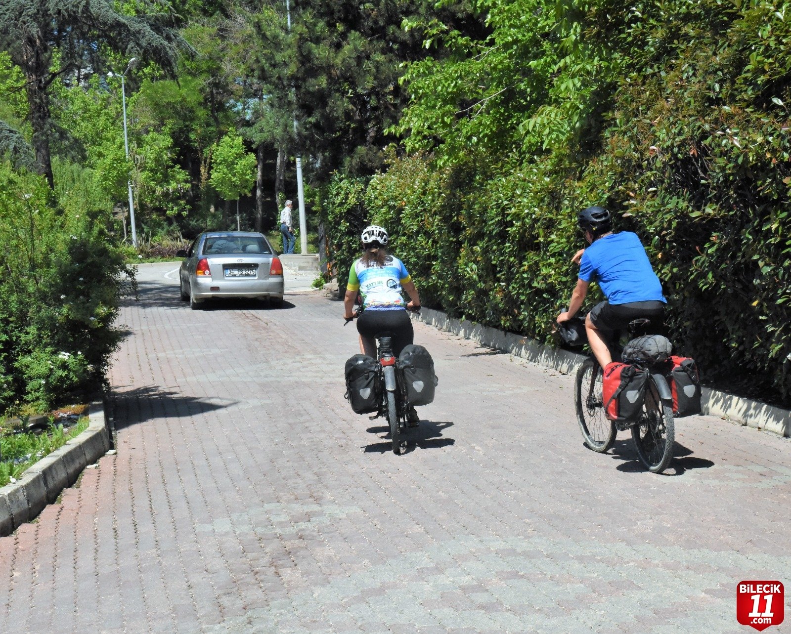 “Konya, İç Anadolu ve Doğu’dan Gürcistan’ın başkenti Tiflis’e gidecekler. 5 bin kilometre katetmeyi planlamışlar. 10 haftalık yapmışlar. Çift, daha önce Avrupa’da ‘Warm Showers’ rotaları var, kendilerini deneyimlemişler. Burada turizm konusunda ve diğer ihtiyaçlarını karşılıyoruz. Bisikletli turizm kısmını temsil ediyorum. Sufi Yolu var, İstanbul’dan Konya’ya giden 800 kilometrelik yol, bu yolu da takip ediyorlar. 100 kilometresi Bilecik’ten geçiyor.”
