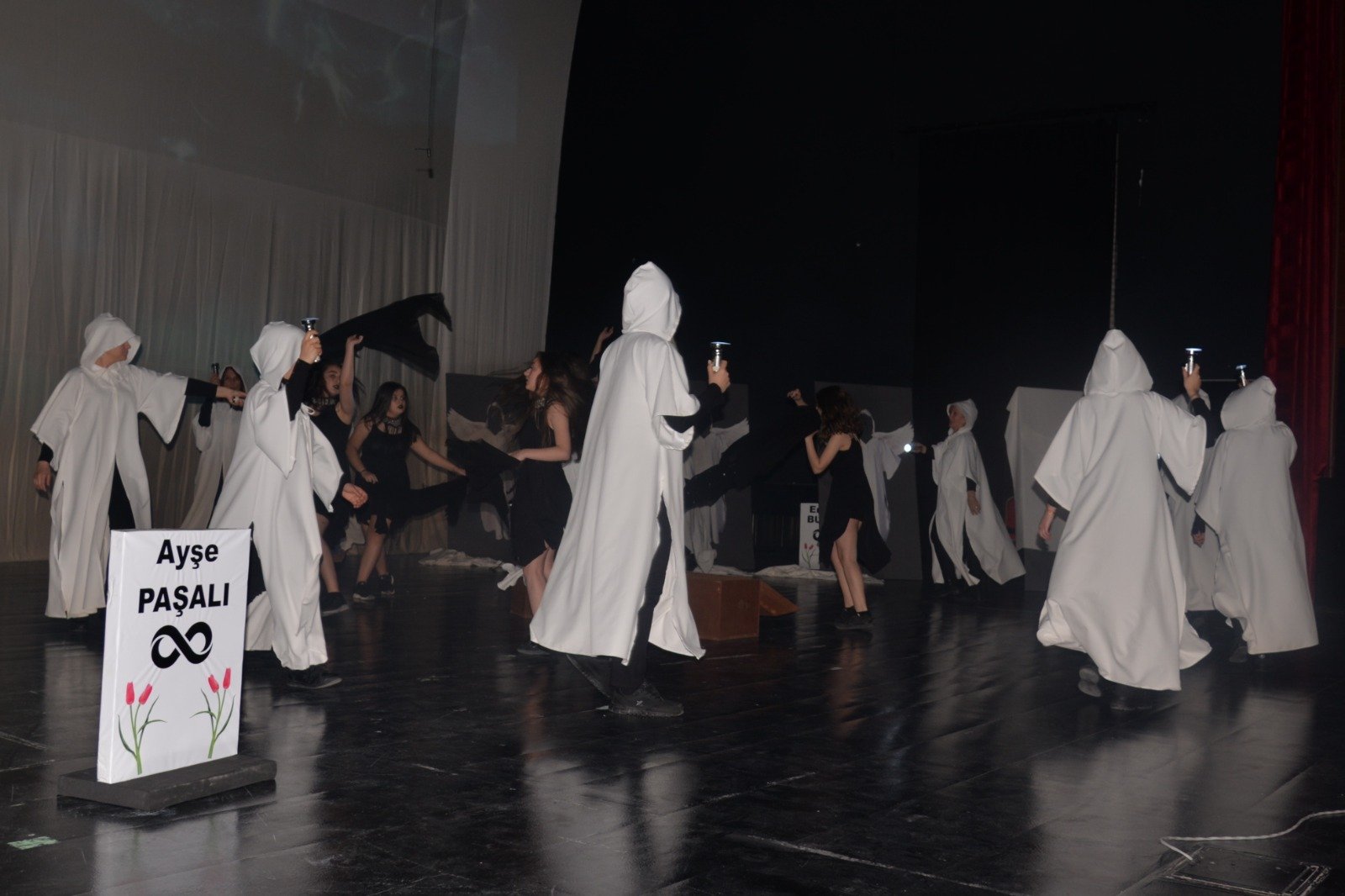 Bilecik Belediyesi Şeyh Edebali Kültür ve Kongre Merkezinde sahne alan oyunda, eşleri tarafından hayatlarına son verilen kadınların hayat hikayeleri sahneye yansıtıldı.