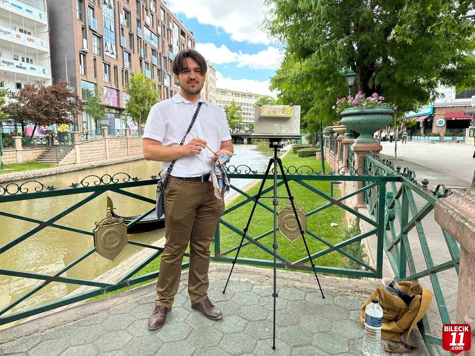 Eskişehir’de üniversite kazanan 19 yaşındaki Cengiz Ferhat Alioğlu, tanımak için sokaklarını gezdiği şehirde sulu boya tekniğiyle manzara resimleri çiziyor.