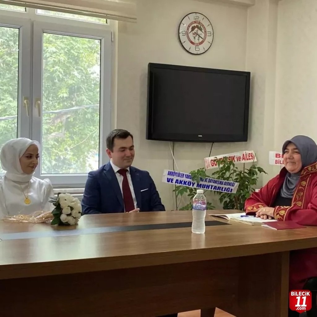 Yağmur Akkoyun ve Muhammet Emre Arslan çiftinin belediyede düzenlenen nikah töreninde, İlçe Kaymakamı Furkan Recep Nalbant nikah şahidi oldu.