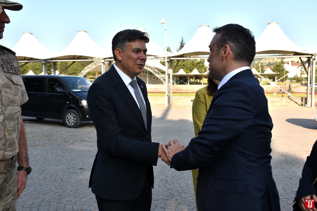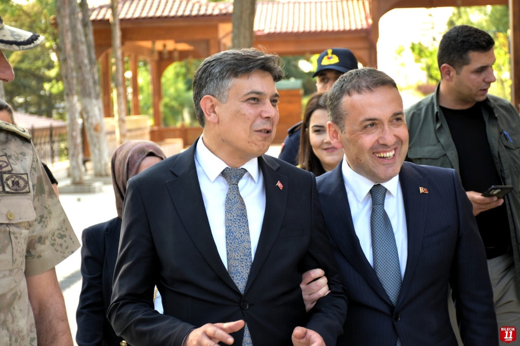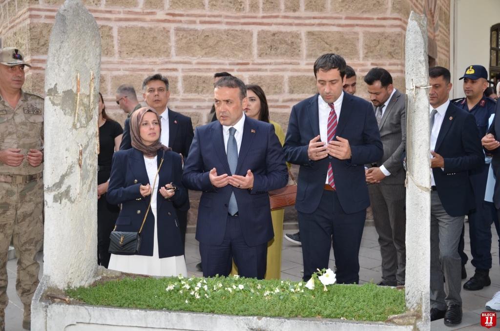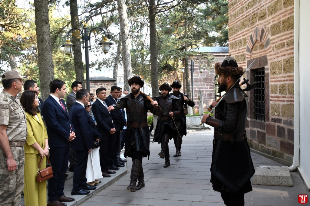 Vali Sözer ve eşini, türbe önünde Kaymakam Ömer Faruk Tuncer ve eşi Çiğdem Tuncer, Belediye Başkanı Ferhat Durgut, Jandarma Ulaştırma Eğitim Merkez Komutanı Albay Dr. Talha Övet ile ilgililer karşıladı.