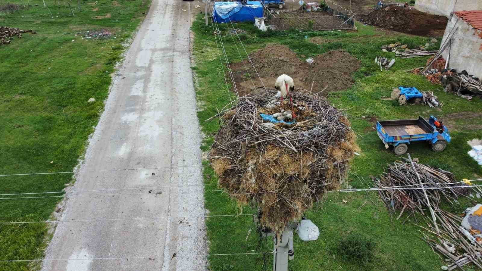 Leyleğin yuvasını kurduğu direğin yanı başındaki evde oturan Hasan Demir, kendisinin de ellerinden geldiği kadar leyleğe yiyecek verdiklerini ifade ederek, leyleğin adeta köyün bir parçası olduğunu dile getirdi. Demir, “Leylek her sene mart, nisan ayı gibi buraya gelir yavrularını büyütür kış ayı gibi memleketlerine geri dönerler” dedi. – İHA