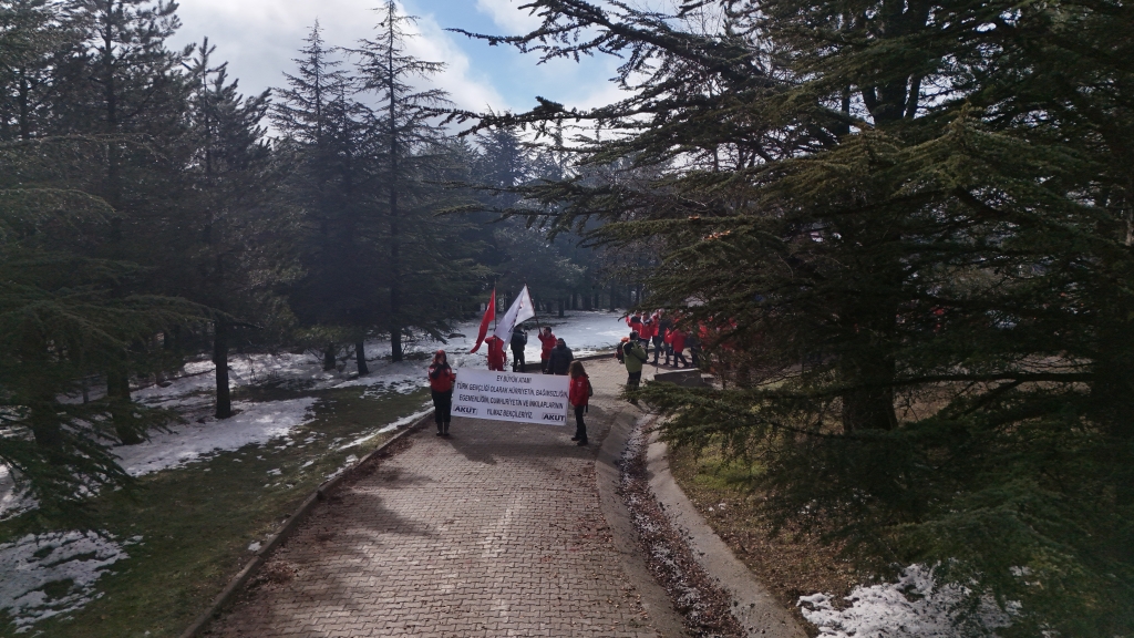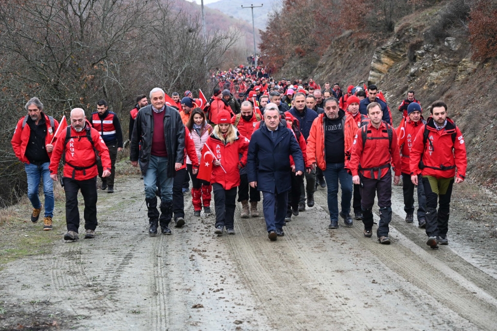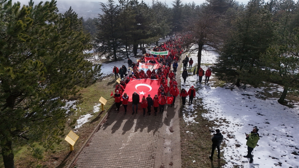Katılımcılara hitaben bir konuşma yapan Bozüyük Belediye Başkanı Mehmet Talat Bakkalcıoğlu, güzel bir yürüyüş olduğunu belirterek, tüm katılımcılara teşekkür etti. Başkan Bakkalcıoğlu, “Yürüyüşümüzde 6,5 kilometre yol yürünmüş, 425 metre rakım farkı var ve yaklaşık 2,5 saat sürede yürüdük. Ama bir de savaş zamanını düşünelim; o zamanlar güneşli günler yokmuş, karda kışta, ayağında çarığı bile olmadan, Yunan’la savaşan Türkiye’nin ilk düzenli ordusunun kazandığı 1. İnönü Zaferi çok kıymetli. O nedenle buradan batıya doğru bakarsanız, Bozüyük ve savaş cepheleri olduğu gibi gözüküyor. İsmet Paşa o zaman Albay, buradan seyrediyor ve bir telgraf çekiyor Ankara’ya. Uzun bir telgraftır, onun içinde diyor ki; ‘Düşman ölülerini bırakarak cephe hatlarından kaçıyor, Bozüyük yanıyor.’ Bozüyük, 3 kez yakılmıştır; İnönü Savaşları’nın tüm cephe hatları Bozüyük’tedir. İnönü’de bir karargâh ve bir çadır hastanesi vardır. İki savaşta da bu şekilde yapılmıştır. O nedenle biz, yaşadığımız yerde, kent içinde her toprağa bastığımız yerin altında bir şehit kanının olduğunu düşünerek yaşamaya çalışıyoruz Bozüyüklüler olarak. İşte Mustafa Kemal Atatürk, İsmet Paşa’ya cevaben o telgrafta diyor ki; ‘Siz orada yalnız düşmanı değil, milletin makus talihini de yendiniz.’ Yani orada bir dönüm noktası var. Kurtuluş Savaşı öyle başlıyor ve sonunda kazanılıyor. Biz Bozüyük olarak her yerin bir simgesi var, birçok kentin çeşitli tarım ürünleri gibi simgeleri var, her şey var. Biz de öyle bir şeyler yok ama Bozüyük’ün simgesi olarak ‘milletin makûs talihinin yenildiği yer’ olarak onu taçlandırmaya çalışıyoruz” dedi.