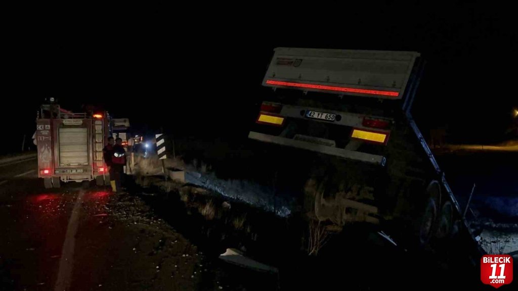 Edinilen bilgilere göre, M.Y., idaresindeki 42 V 4283 inşaat demir yüklü tır arıza nedeniyle yol kenarında bekleyen süt tozu taşıyan 42 ANJ 678 plakalı yüklü tıra çarpıp ardından yol kenarındaki yaklaşık 3 metrelik menfezden aşağı düştü.