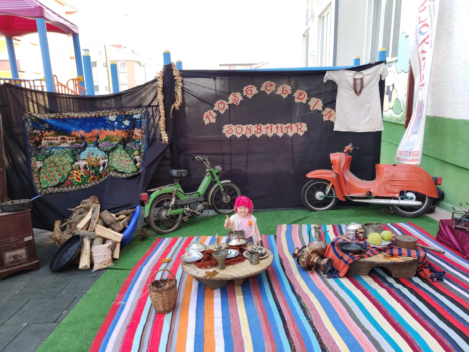 İpekyolu Anaokulu sonbahar etkinliği kapsamında köy konsepti oluşturuldu. Anaokulun bahçesinde köy evi konsepti ile sergilenen soba, gaz lambası, kömürlü ütü hakkında öğretmenler tarafından öğrencilere bilgi verildi.