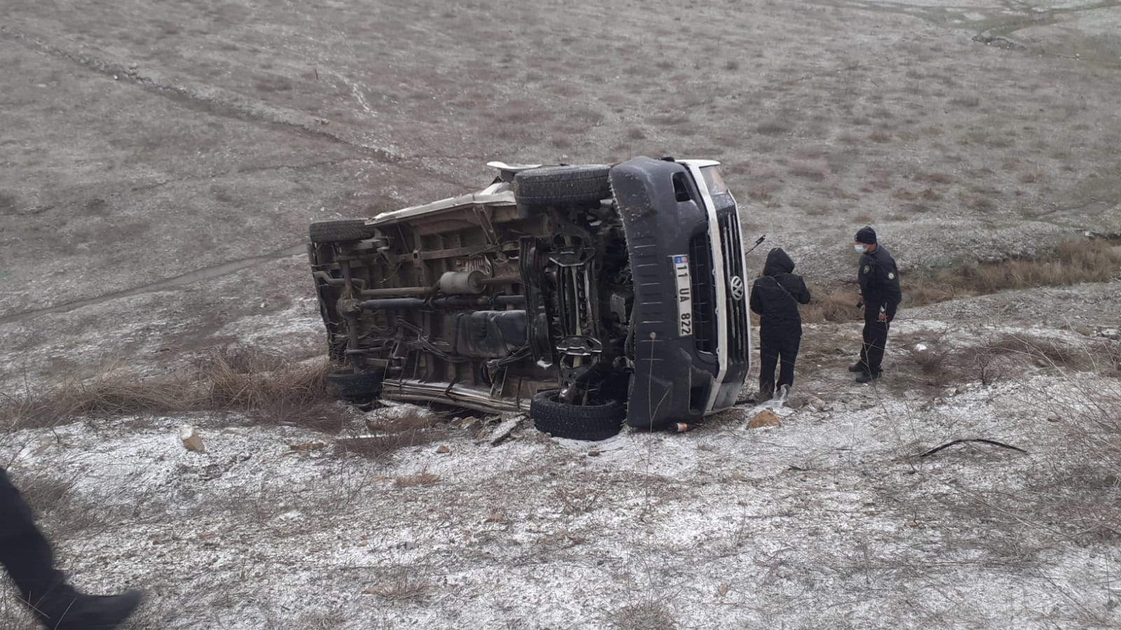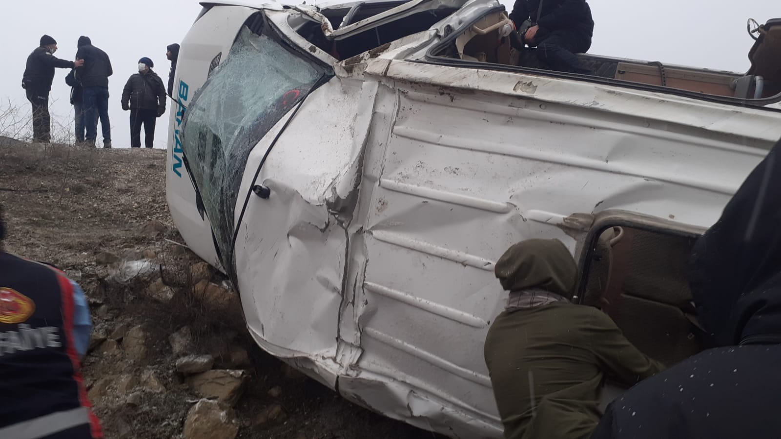 Eskişehir’den ilçedeki seramik fabrikasına işçi getiren S.G’nin kullandığı 11 UA 822 plakalı minibüs, Sırhoca köyü mevkisinde yol kenarına devrildi.