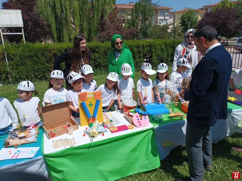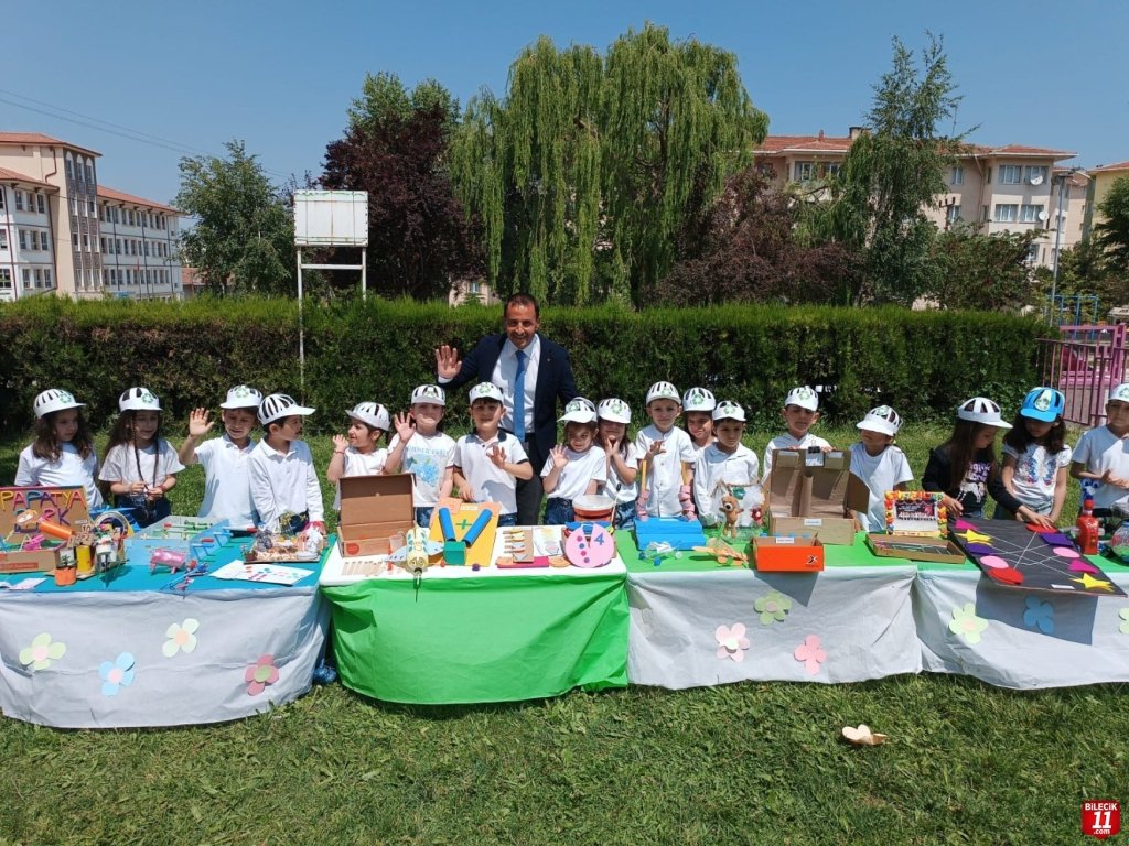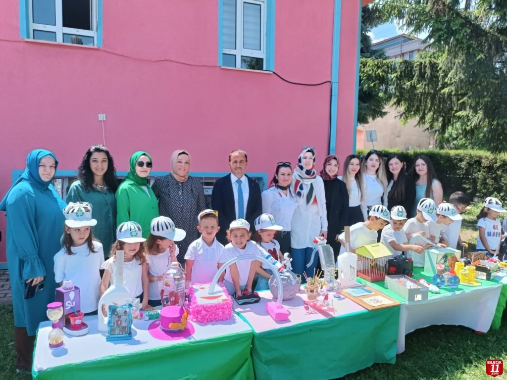 Öğrenciler tarafından proje kapsamında yapılan ürünler, Anaokulu Bahçesinde sergilendi.