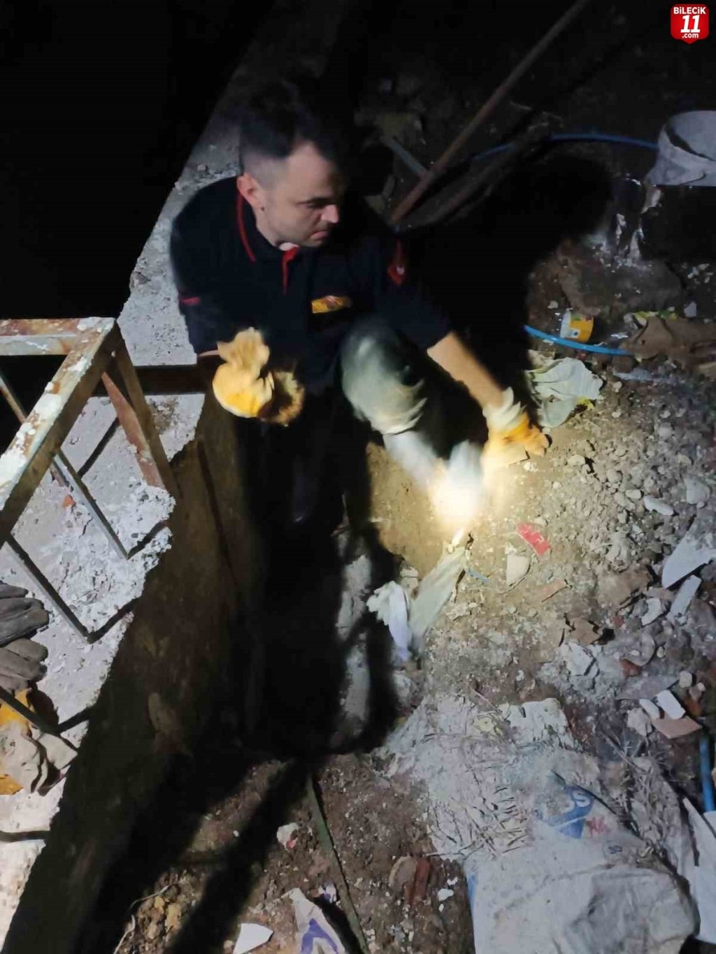 Bilecik Belediyesi İtfaiye Müdürlüğü ekipleri, gece saatlerinde gelen ihbar üzerine bir istinat duvarı arasına sıkışan kediyi, yaklaşık 2 saatlik uğraşın sonunda kurtardı.