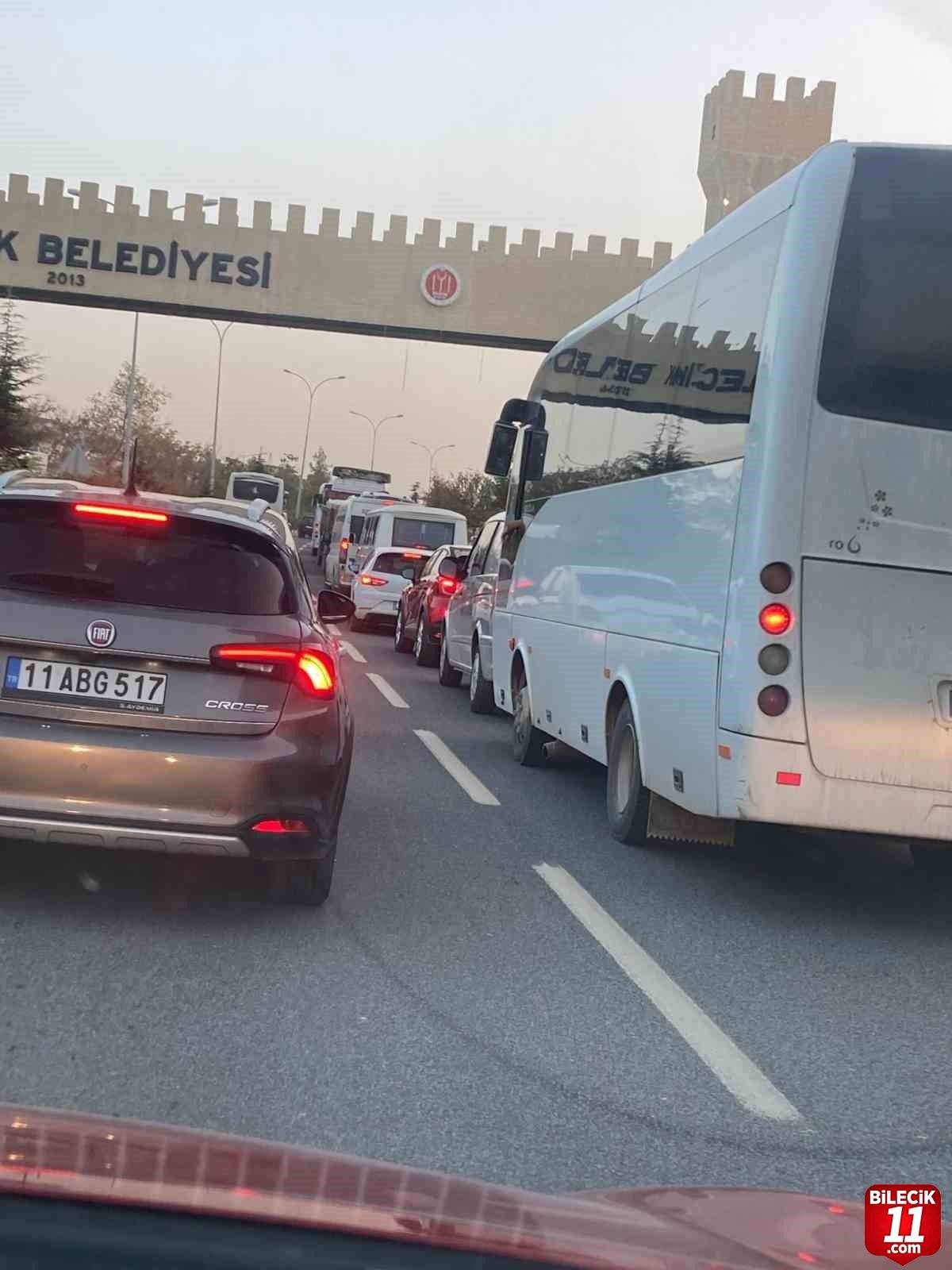 Bilecik’te pazartesi günü itibariyle yaşanan trafik yoğunluğu nedeniyle araç kuyruğu yer yer 2 kilometreye kadar uzandı.