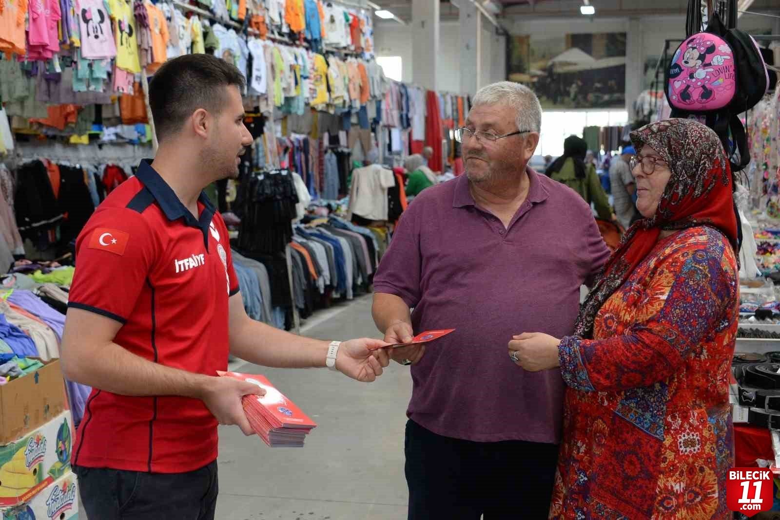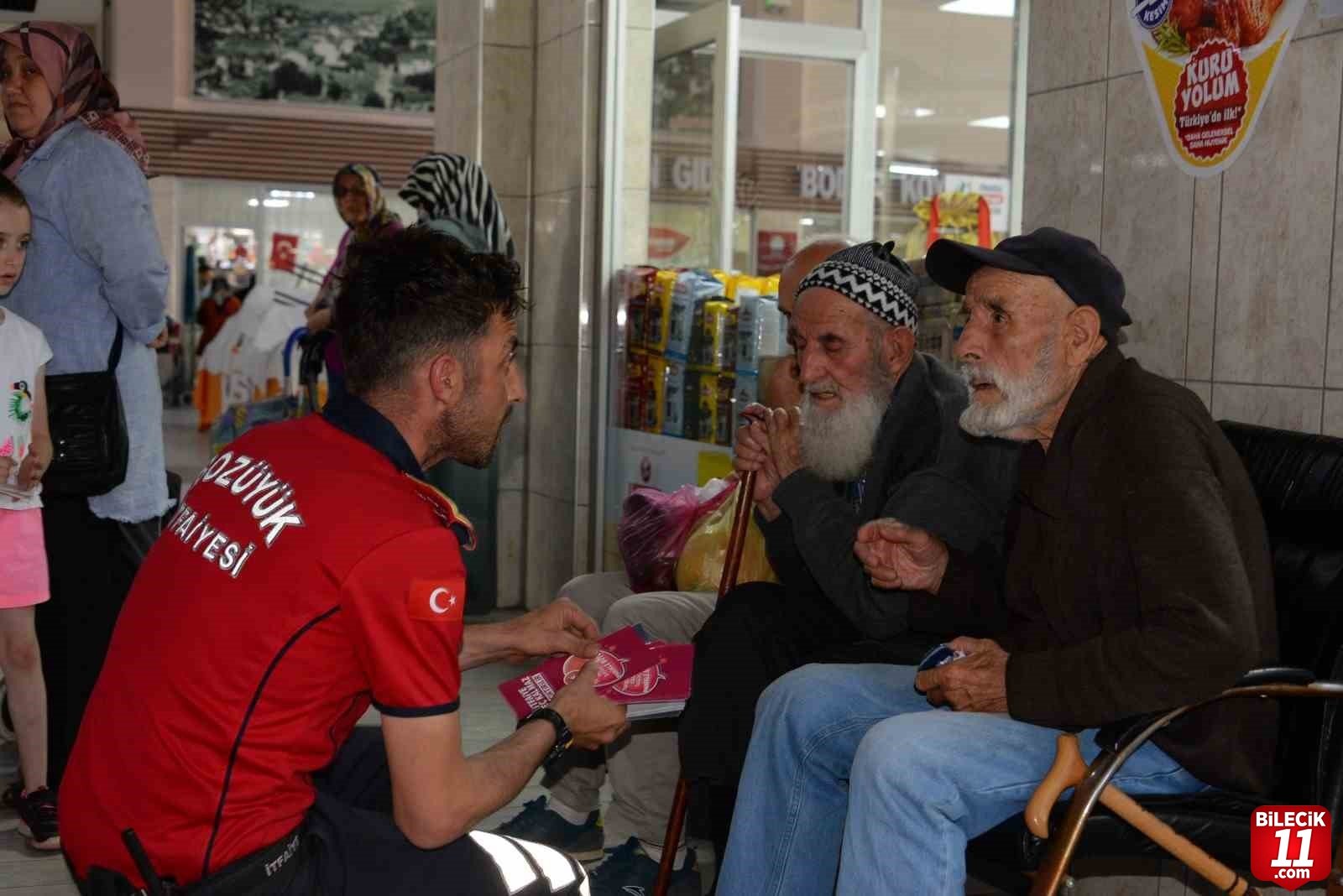 Bozüyük Belediyesi itfaiye ekipleri vatandaşları deprem konusunda bilgilendirme ve bilinçlendirme amacıyla broşür dağıttı.
