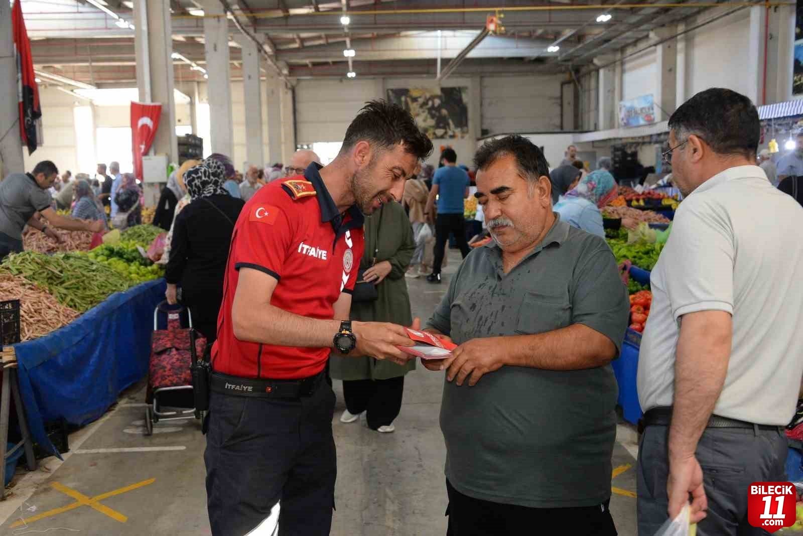 İtfaiye ekipleri deprem bilgilendirme broşürü dağıttı