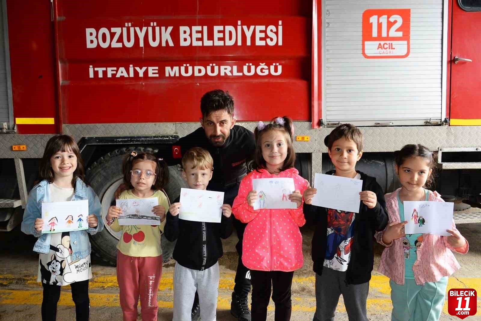 4. İtfaiyeci amcalarına yaptıkları resimleri hediye ettiler