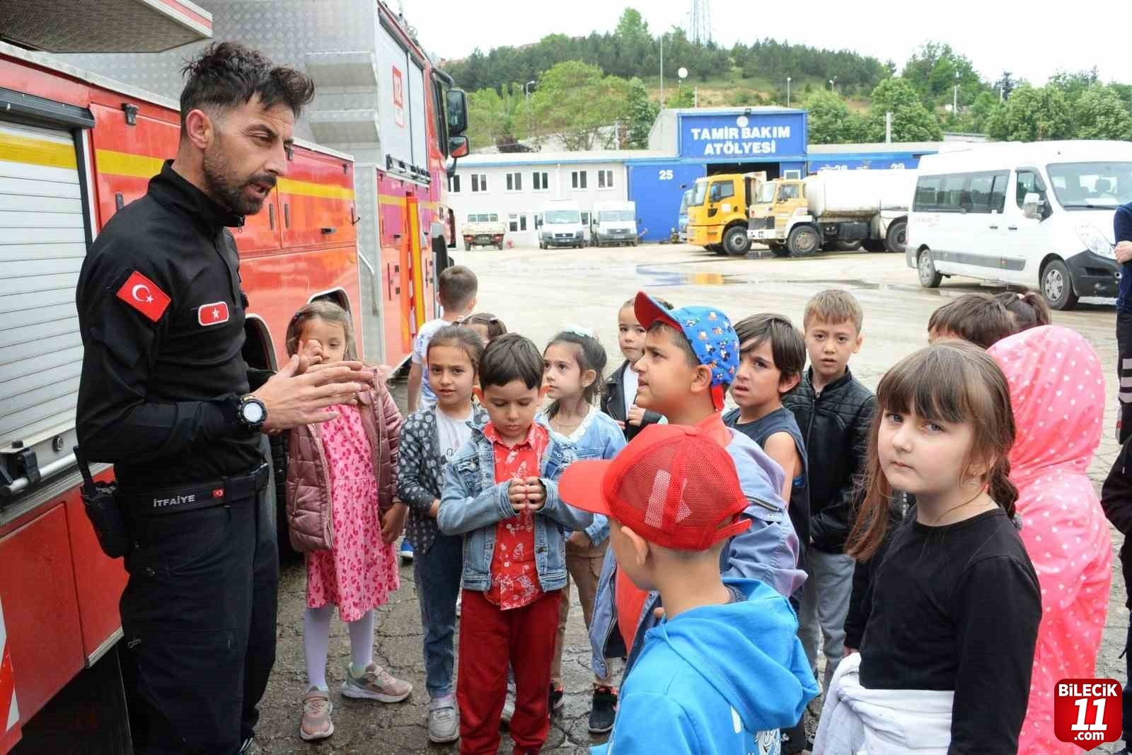 Bozüyük’te Yeni Mahalle’de eğitim veren Bozüyük Anaokulu’nun minik öğrencileri, yangın eğitimi aldı.