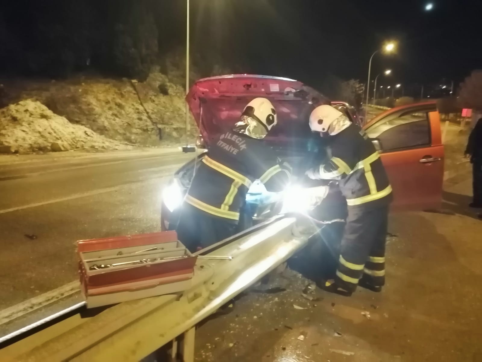 Bilecik Belediyesi İtfaiye Müdürlüğüne bağlı ekipler, gece mesaisi kapsamında araç yangını ve trafik kazasına müdahalede bulundu.
